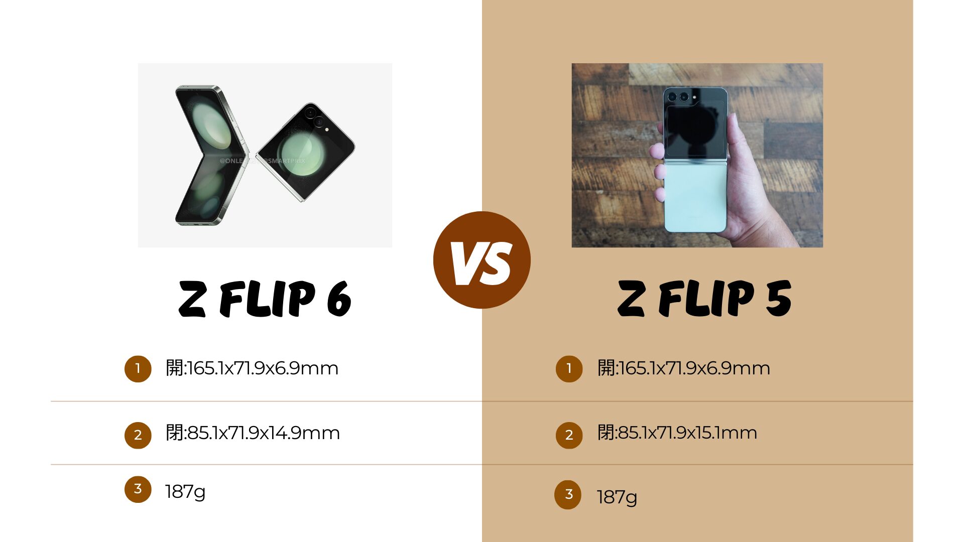 事前情報からもバッテリー容量を増加させるために現行モデル対比で本体の厚みが増すと予測されていましたが直近の情報を確認すると本体を開いた状態は全く一緒で折り畳んだ時にGalaxy Z Flip 6の方が僅かに薄型化していますが重さも一緒のため違いを分かりにくいです。