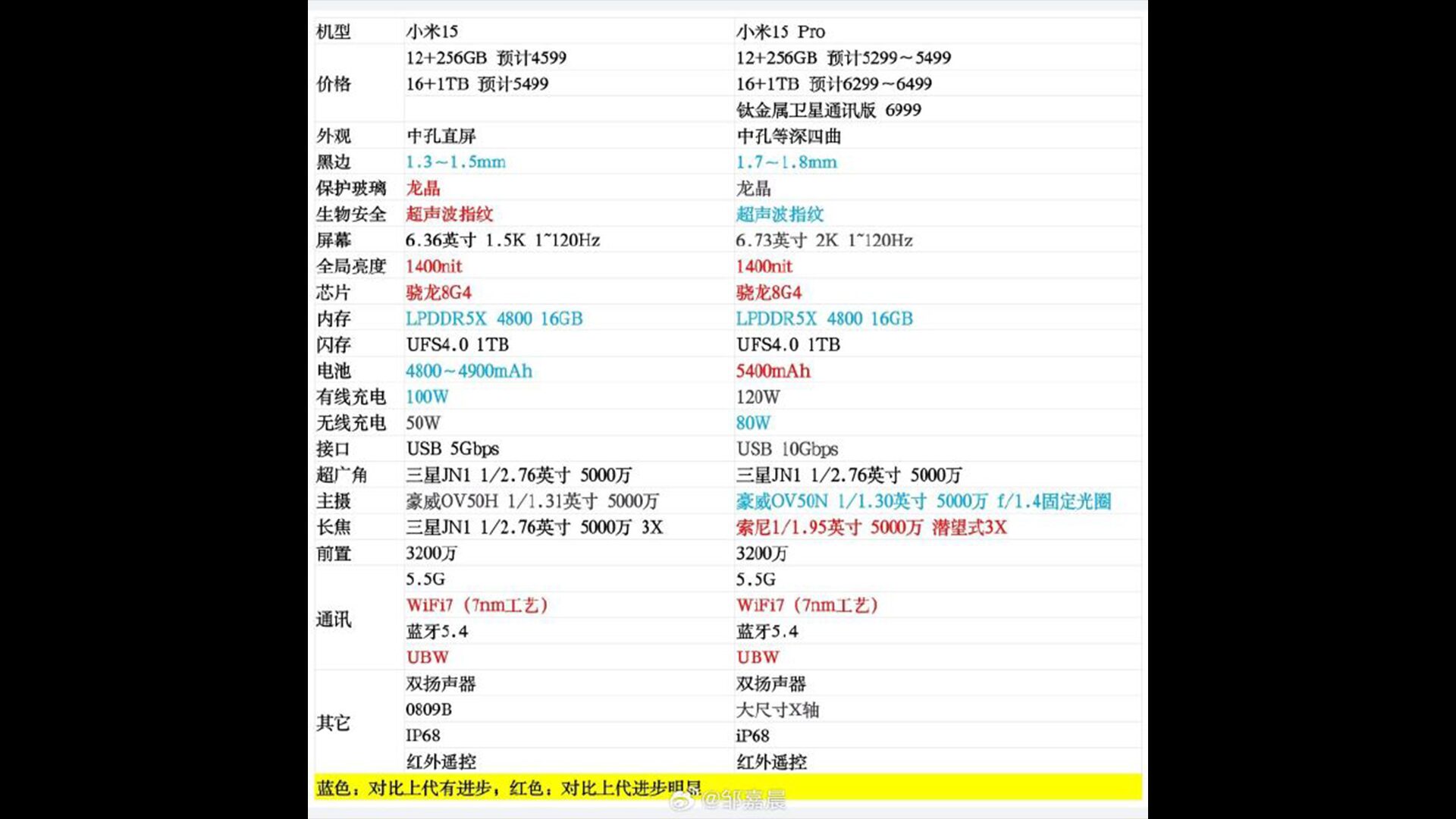 今回weiboにおいてXiaomi 15シリーズのスペックシートが投稿されていることが判明したので簡単にまとめたいと思います。
