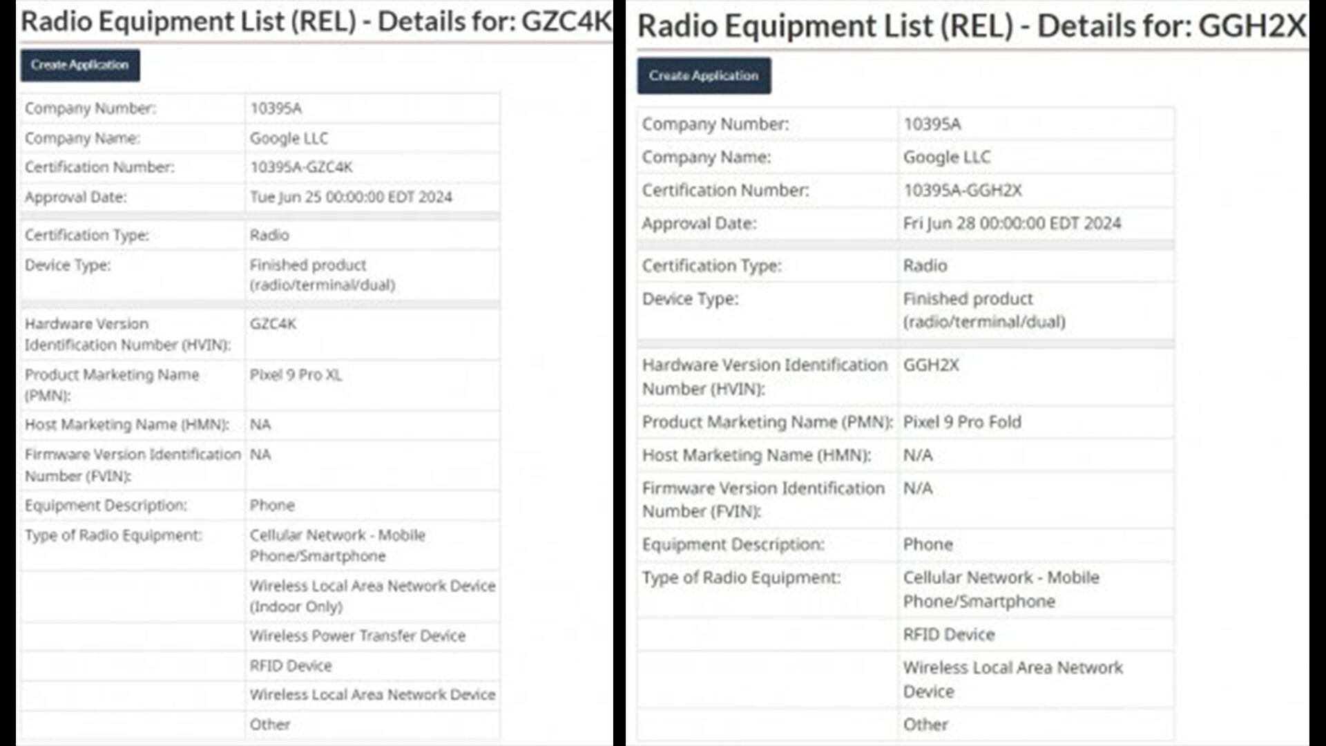 今回の情報によるとカナダのラジオ機器リスト(REL)において未発表のPixelが認証を通過していることが判明したとしています。上記の画像からも「Pixel 9 Pro XL」と「Pixel 9 Pro Fold」という名称を確認することが出来ます。