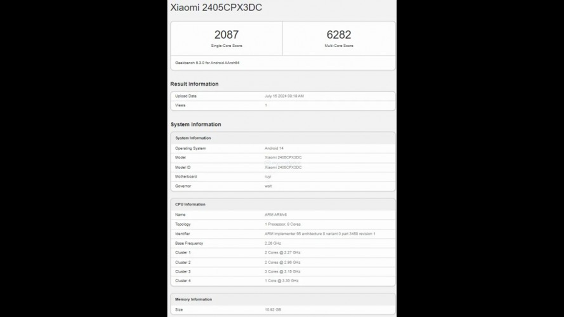今回Xiaomi Mix Flipのベンチマークスコアがリークしていることが判明したとしています。上記の画像からもAndroid 14/Snapdragon 8 Gen 3を搭載していることを確認することができます。