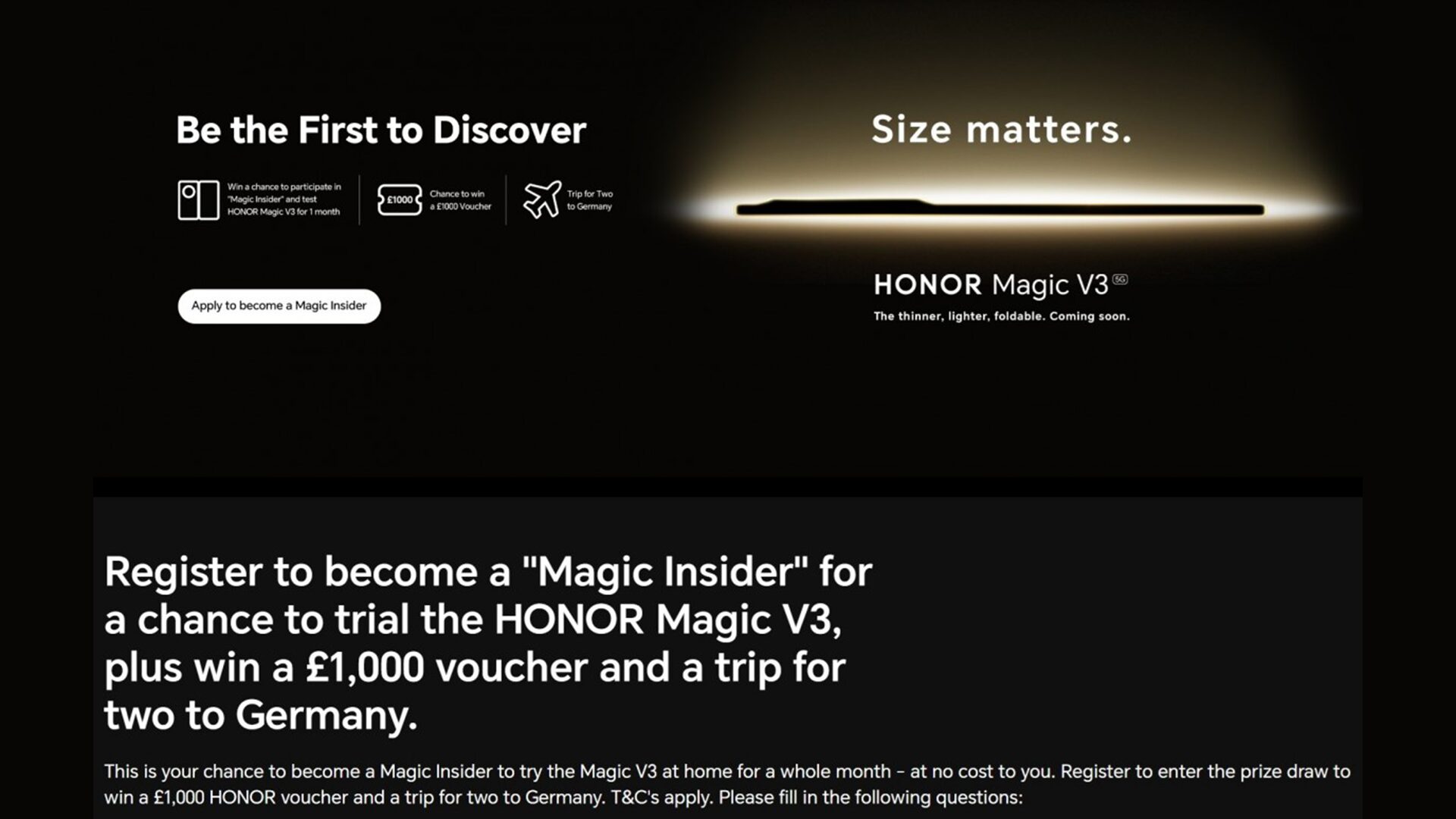 今回HONOR イギリスにおいてHONOR Magic V3の特設ページが公開されていることが判明したとしています。少なくとも上記の画像からも「まもなく登場」となっており合わせてMagic Insiderプログラムを発表しています。