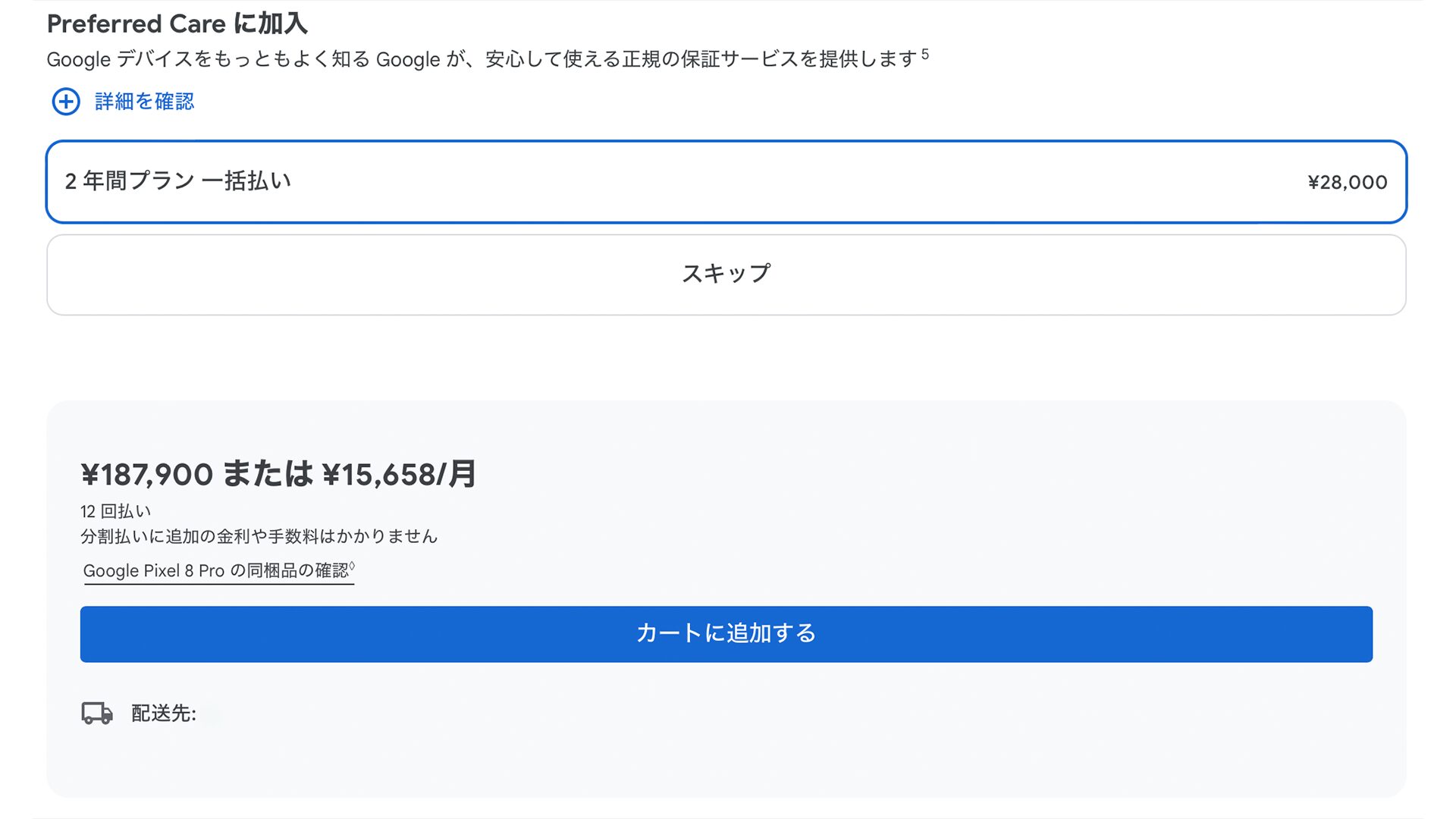 また購入時に加入しなくても購入後30日以内であれば加入可能なのはユーザーとしても嬉しい。ただ注意点としてはPreferred Careは2年分を一括で支払う形となっており月額払いは不可。