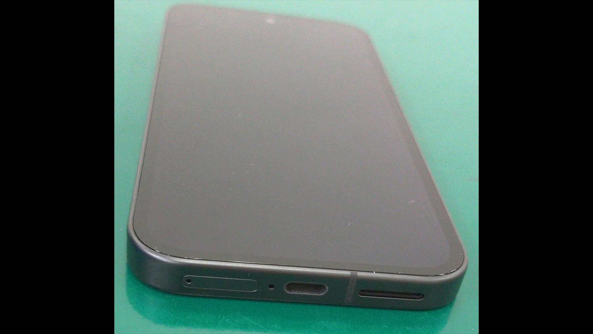 そしてフロント部分を確認するとパンチホールデザインを採用していることを確認出来ます。さらに本体下部も確認することができSIMトレイにUSB-Cにマイクにスピーカーグリルです。