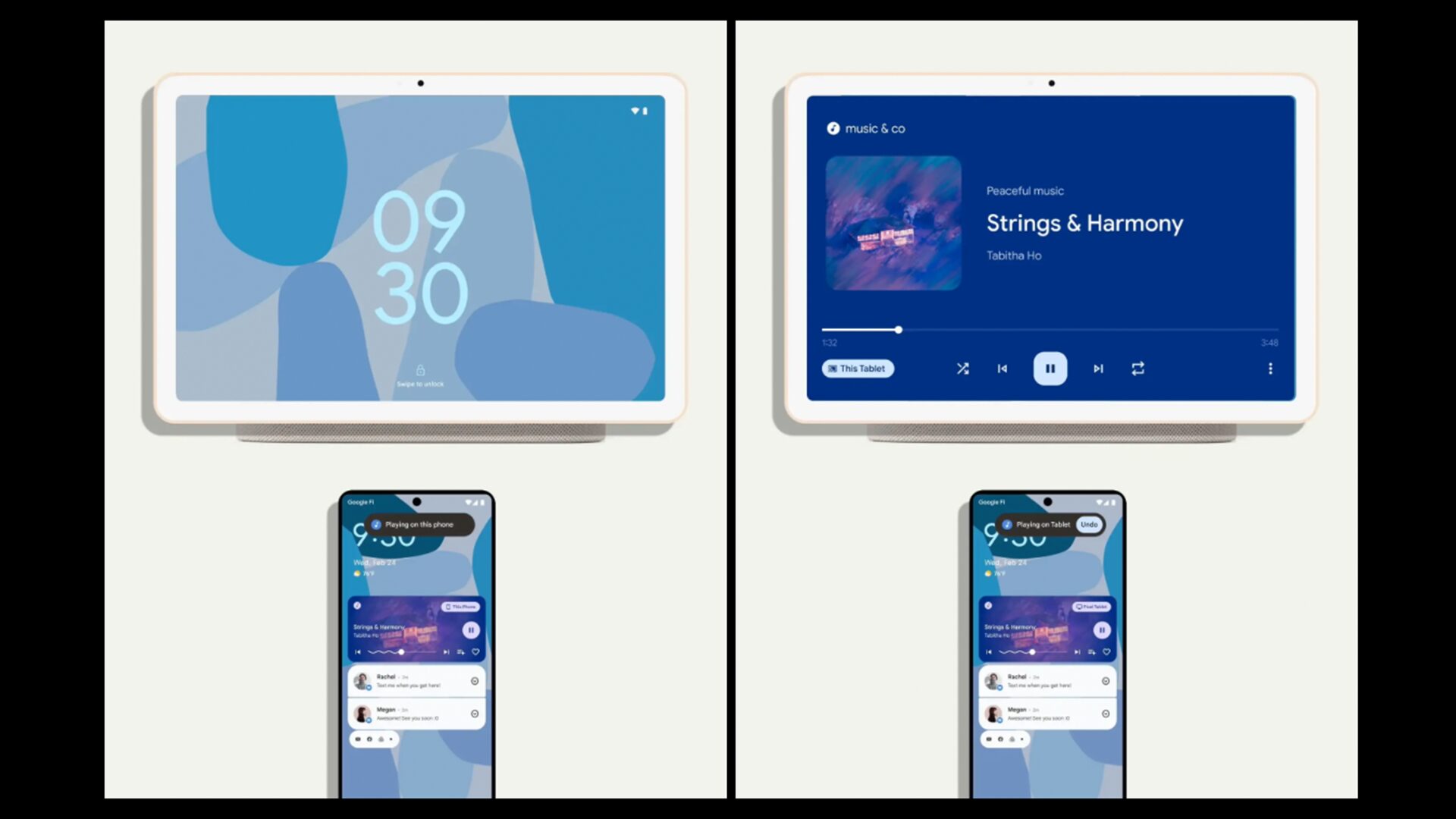先日にGoogleはAndroid15の本配信を開始した際に「Hold close to cast」を正式発表していましたが、今回展開が開始したことが判明したとしています。上記の画像のようにUWBに対応しているPixelで音楽を再生している場合にPixel Tabletに近づくと上記にピル型のポップアップが表示されることを確認することができます。