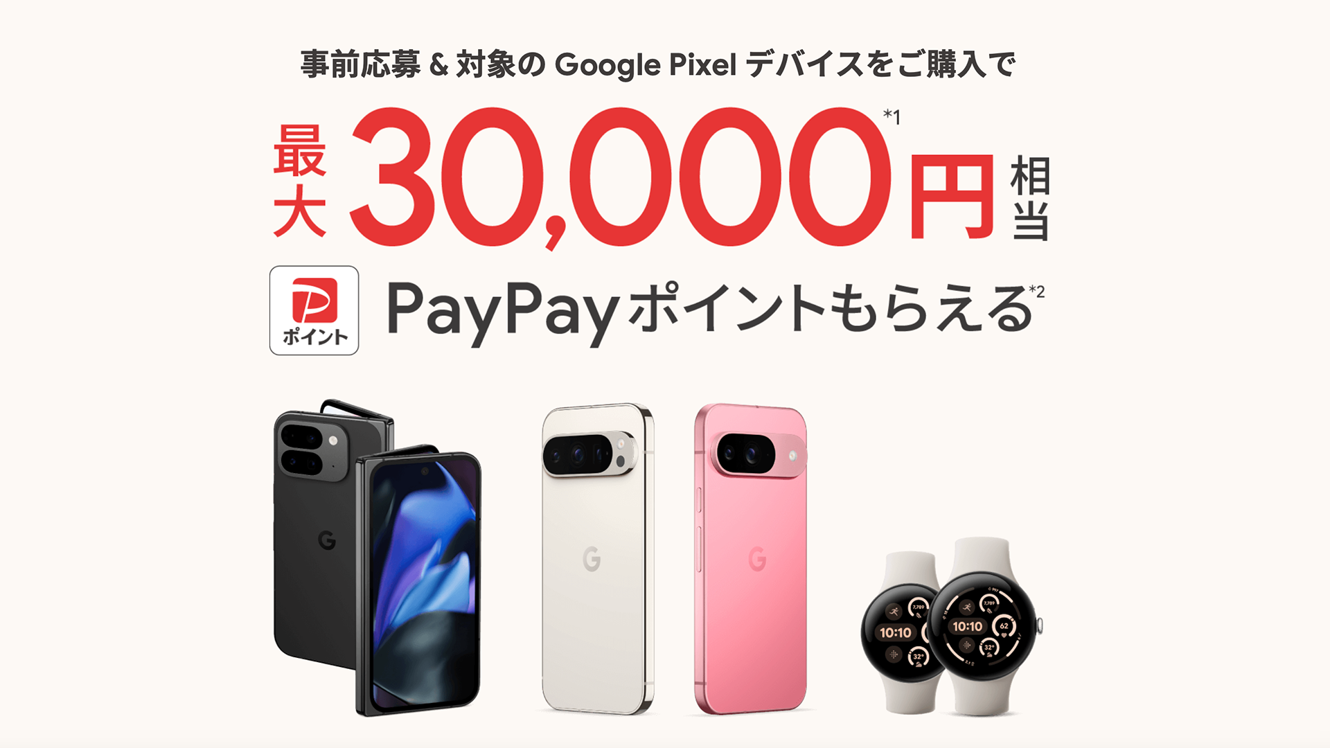 またSoftBankはGoogle Pixel 9シリーズの予約開始日から事前登録をした上で、Pixel 9シリーズを購入したユーザーに最大で3万円分のPayPayポイント還元を行なっています。