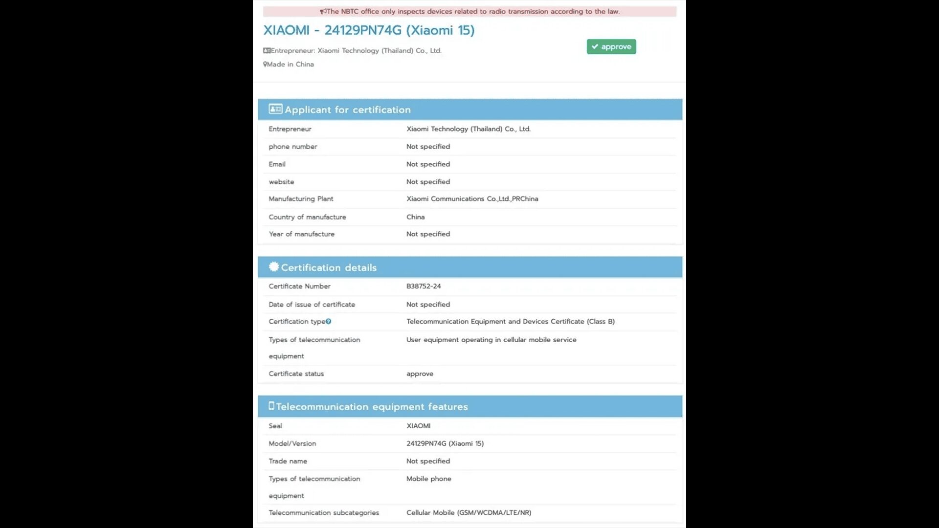 今回GizChainaによるとXiaomi 15がタイで認証を通過したことが判明したと報告しているので簡単にまとめたいと思います。