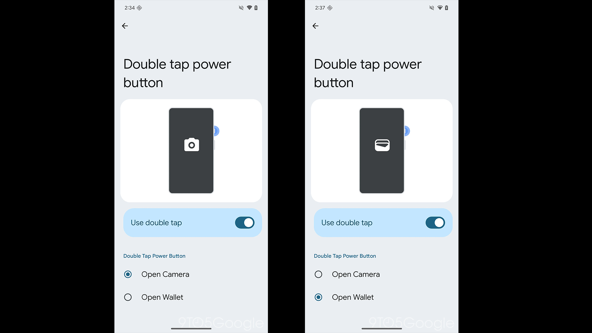 ただ上記の画像からも電源ボタンのオプションが強化されており、カメラの起動もしくはGoogle Walletの起動とユーザーが任意で選べるようになっていることを確認できます。
