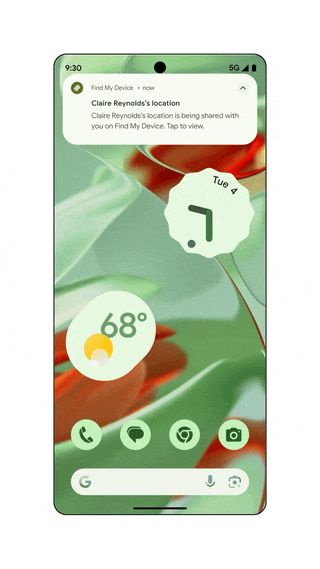 次に2つ目の機能として「ライブロケーション」機能です。Googleが提供しているFind My Deviceアプリにおいて位置情報を共有した人物の位置をマップで確認することが可能になるとしています。