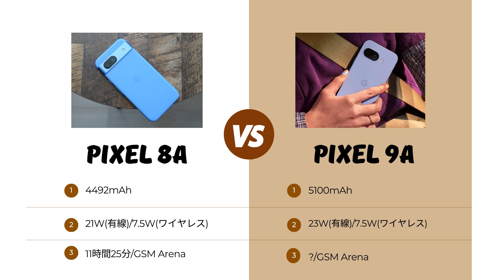 一方でバッテリー関連を確認するとPixel 9aは歴代Pixelとしては最大となる5100mAh容に対応しました。少なくともSoCの一部仕様の違いからも発生するデメリットをしっかりカバーしている可能性があります。