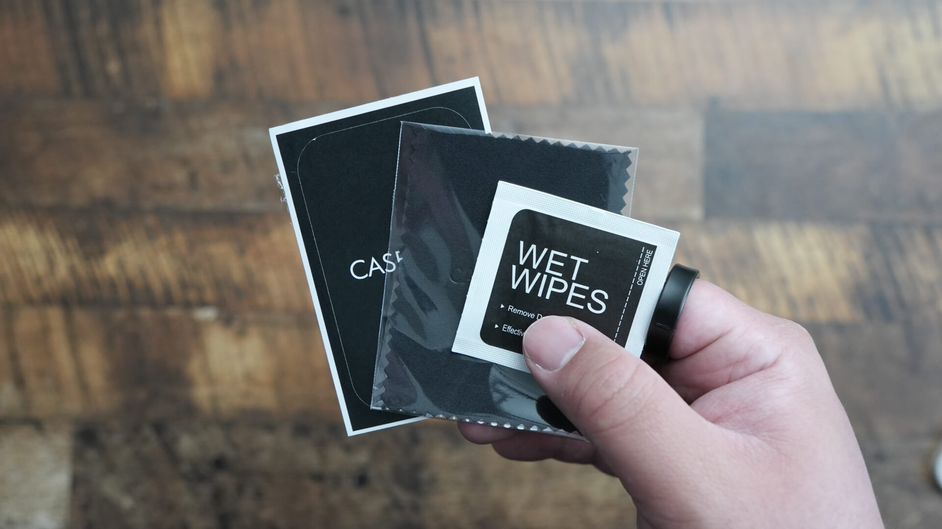 まず付属品を確認するとウエットシート/埃取りシート/吹きクロスにガラスフィルムと2枚ずつ同梱されています。