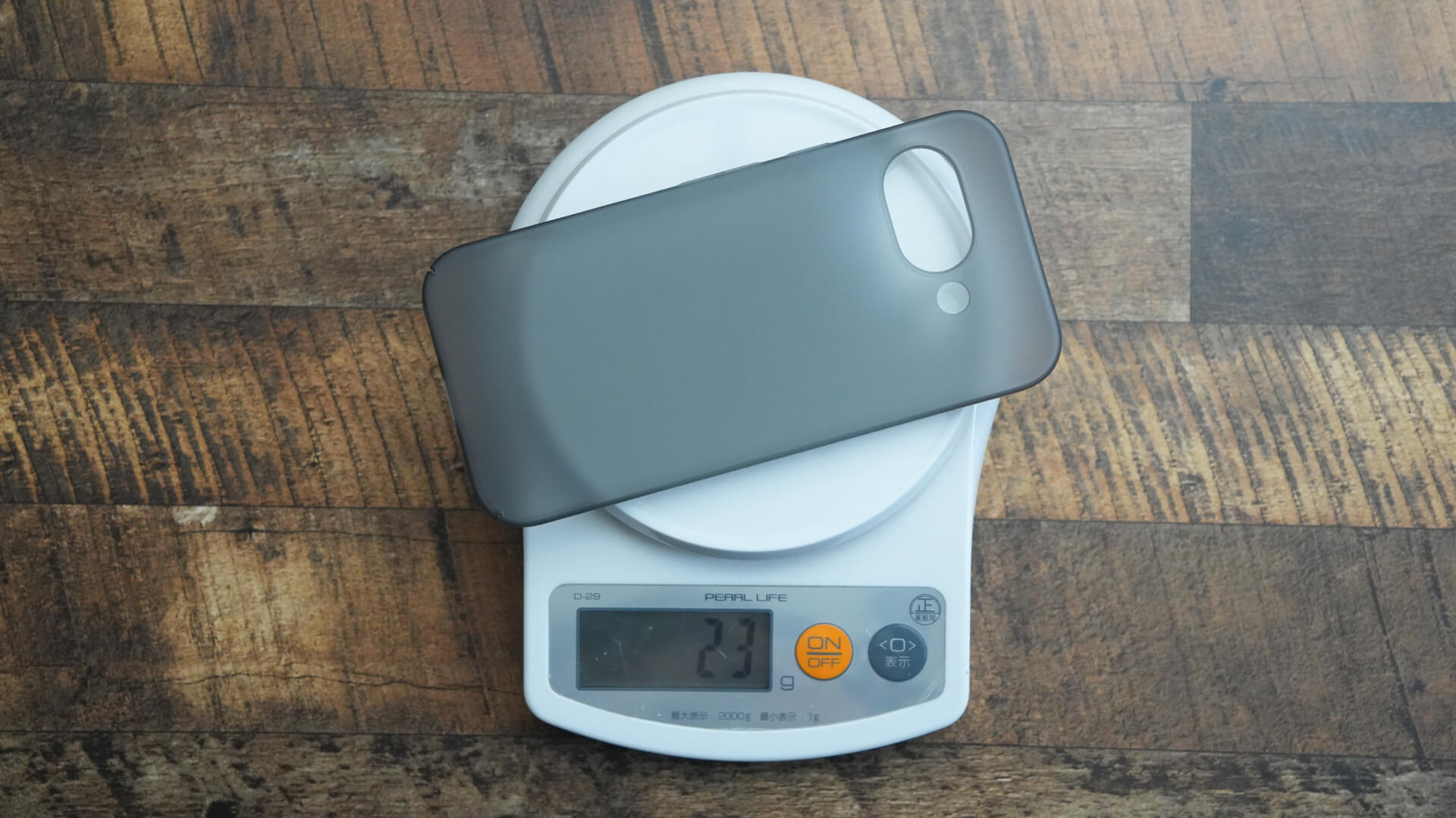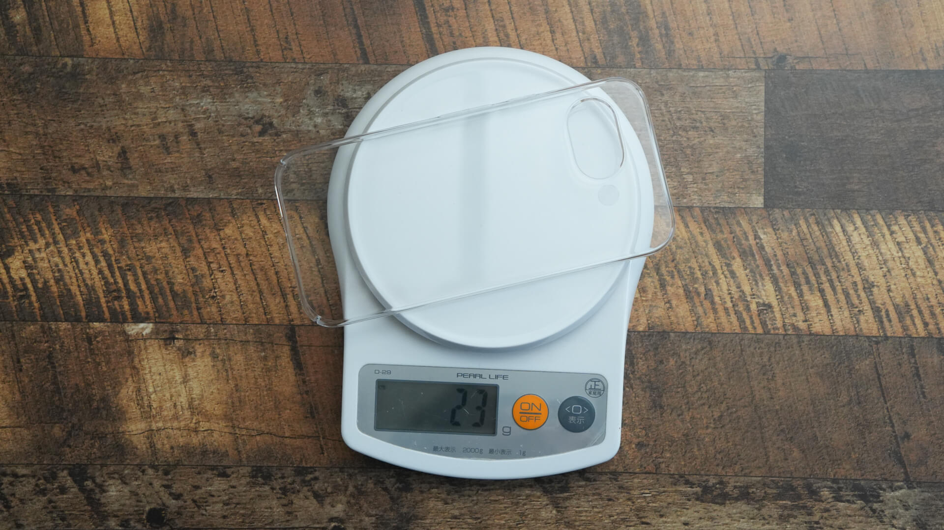 またケース単体の重さを計測してみると23gでTHE INVISIBLE AIRと全く一緒なのが面白いところです。ちなみにガラスフィルム+クリアケース+本体の組み合わせで計測してみると219gなので先ほどと一緒です。