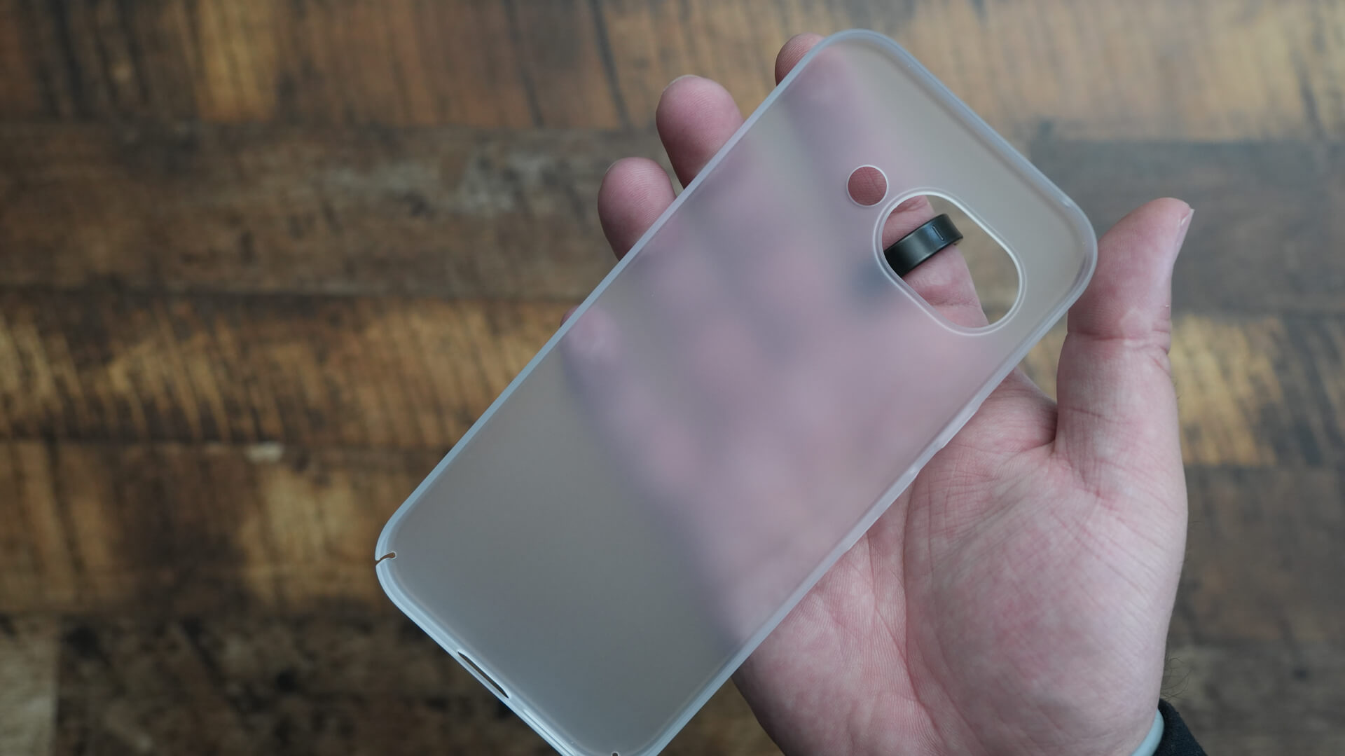 薄型に特化したTHE FROST AIRよりは分厚いですがそれでも他社のケースと比較するとかなり薄めです。また耐衝撃性が高いポリカーボネートを採用していますがマット仕上げの採用で質感はかなり高めです。