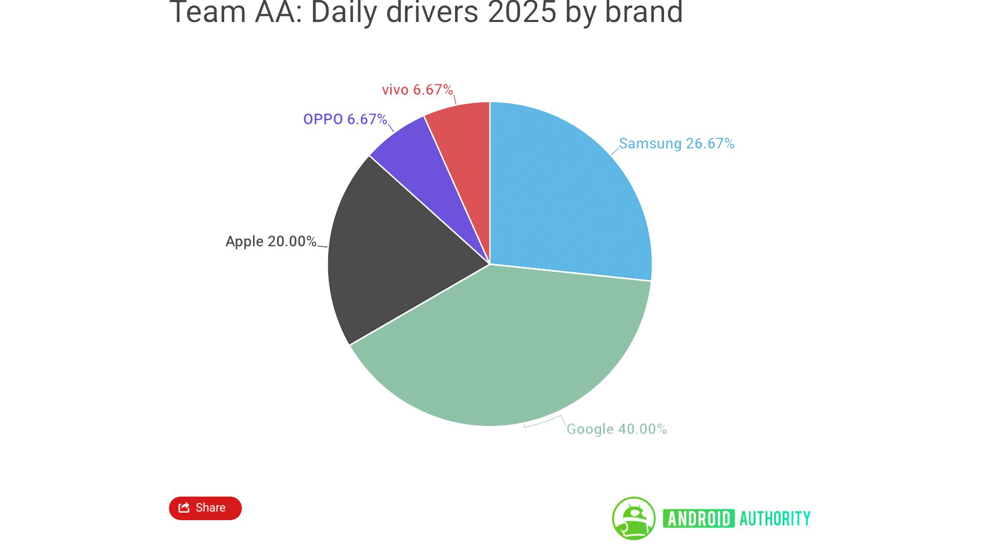 今回同サイトの編集者を対象に、実際に何の機種を使っているのか調査を行ったことを明らかにしました。上記の画像は今回の調査結果を元にメーカー別のシェアをまとめたグラフになります。