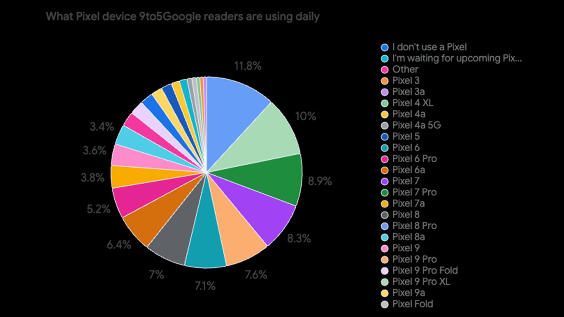 先日より同サイトは「毎日使っているPixelはどれか?」という内容でアンケート調査を実施。そして今回アンケートに1万8000人が回答したとしており、上記の画像がアンケートの調査結果になります。
