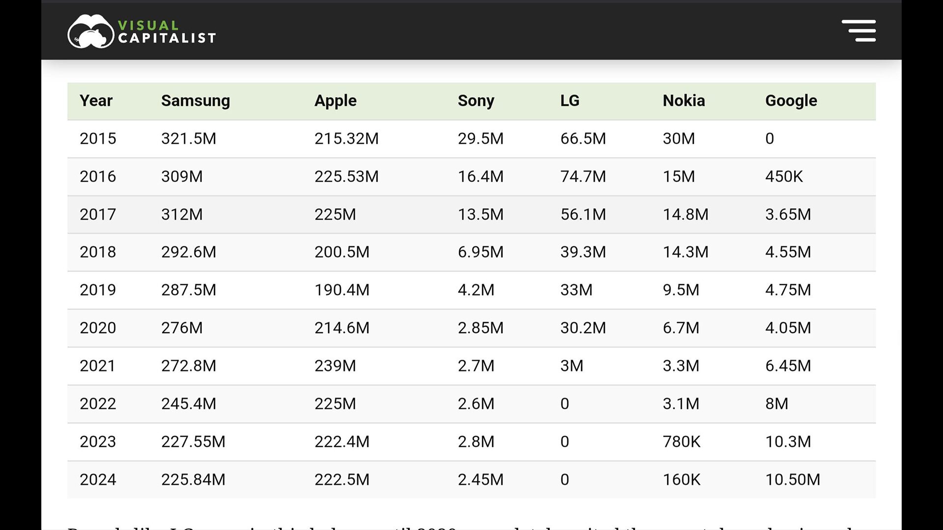 今回Visual CapitalistがXperiaの2015年からの生産台数に言及していることが判明したので簡単にまとめたいと思います。
