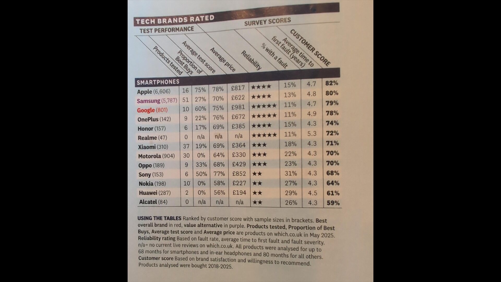 どれ?英国の雑誌は、15000人以上のスマートフォンユーザーを対象とした調査によると、6歳の誕生日までに障害が発生したのはわずか11%であるとGoogleに5つ星を与えています。最初の障害までの平均時間は4.7年でした。このサブスブラウズすると、Googleが最も信頼できないブランドだと思うでしょうが、それは単に幸せな顧客が一般的に自分の経験を投稿しないからだと思います。