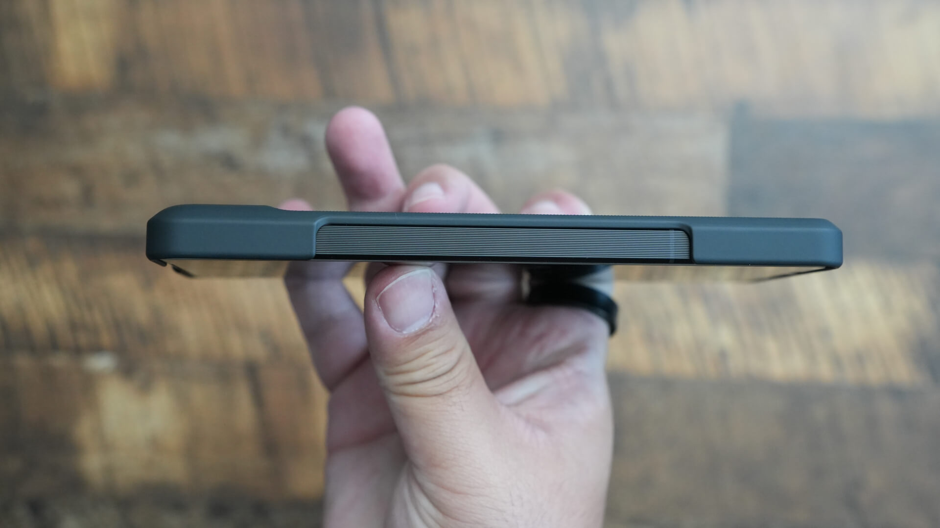 とはいえSonyもカバー性を担保するため以前と比較するとサイドフレームが露出している部分が減っています。正直ケースに何を求めるかはユーザー次第で、引っ掻き傷などから最低限守ってくれればよく取り回し優先の人もいれば、取り回しを犠牲にしてでもしっかり保護して思う人もいると思います。
