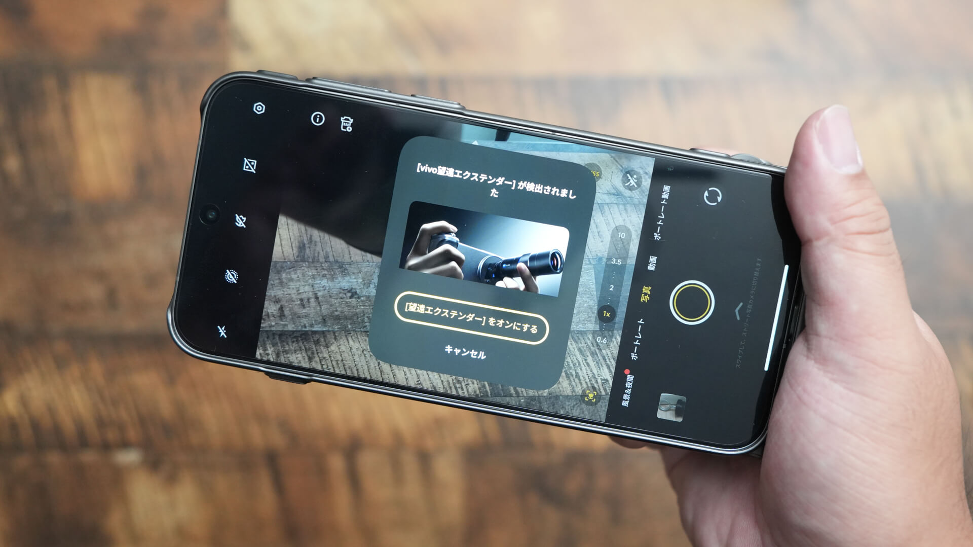 ちなみに外付けレンズを装着すると本体が自動判定で望遠エクステンダーモードを起動します。