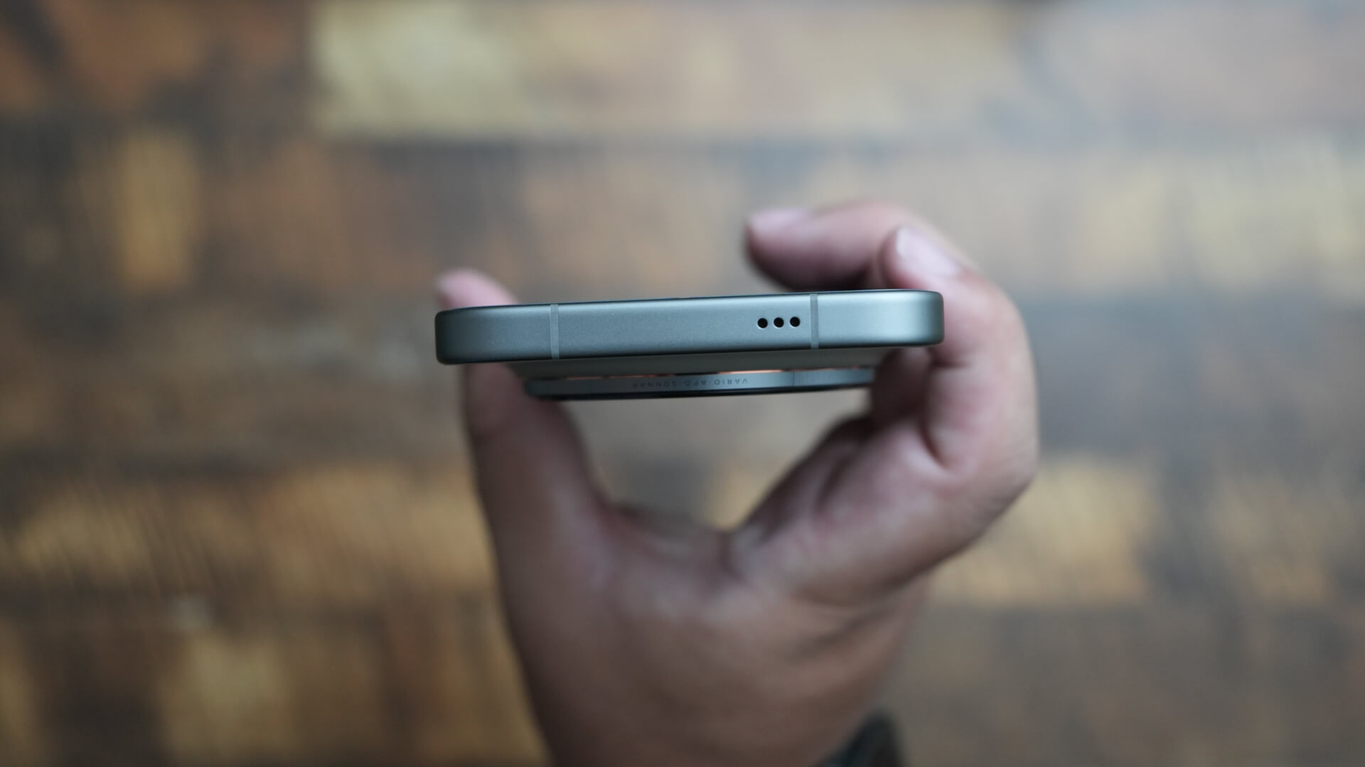 最後に本体下部を確認するとSIMトレイにマイクにスピーカーグリルにUSB-Cを搭載しています。サイドフレームはメタルを採用しつつもフラット形状に加えマット仕上げなので質感高めです。