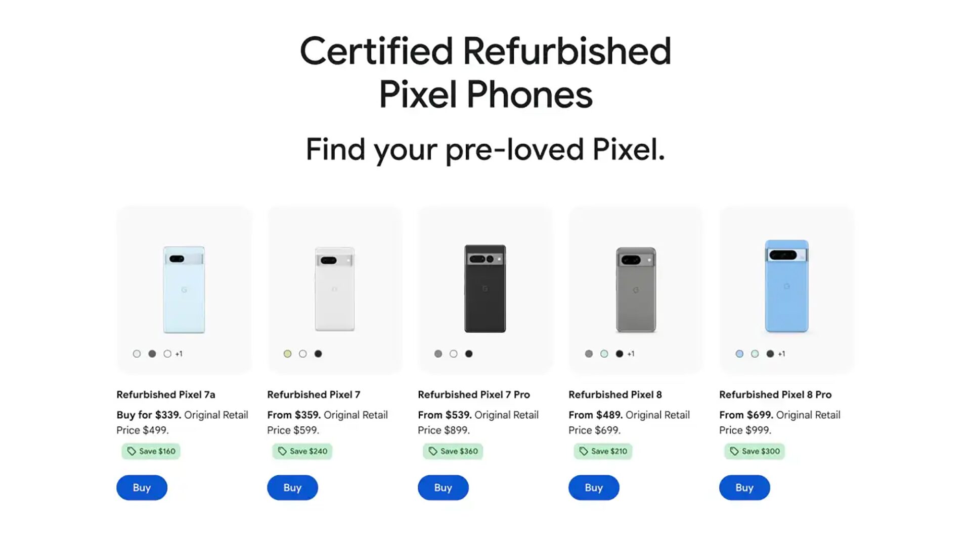 先日には米GoogleにおいてGoogle Pixel 6シリーズの再生品の取り扱いが終了したことも判明していましたが、今回Google Pixel 8シリーズの取り扱いが開始したことが判明したとしています。