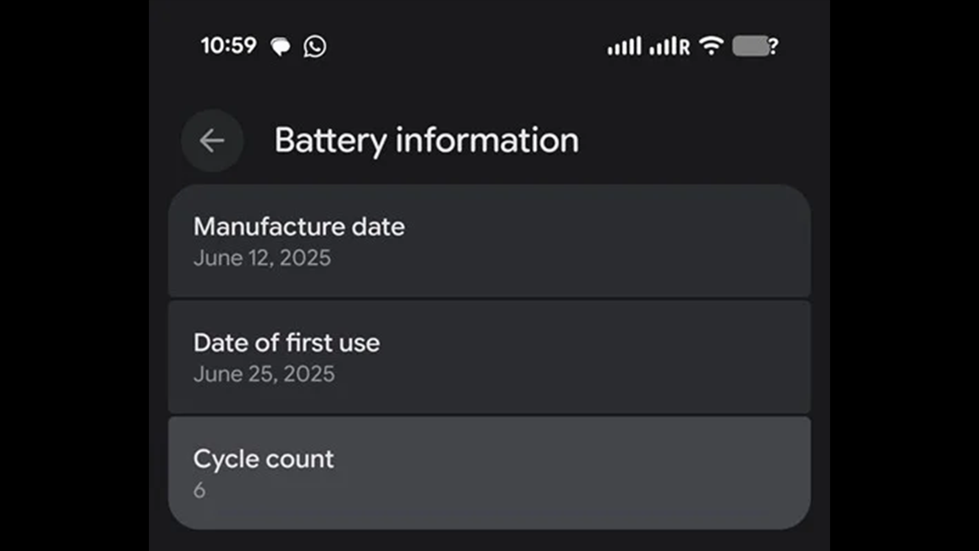 今回の情報によると一部Google Pixel 10 Pro Foldのバッテリーアイコン部分に「?」が表示されることが判明したとしています。あるユーザーによるとQi2に対応したワイヤレス充電器で充電した場合に「?」が表示されると報告。