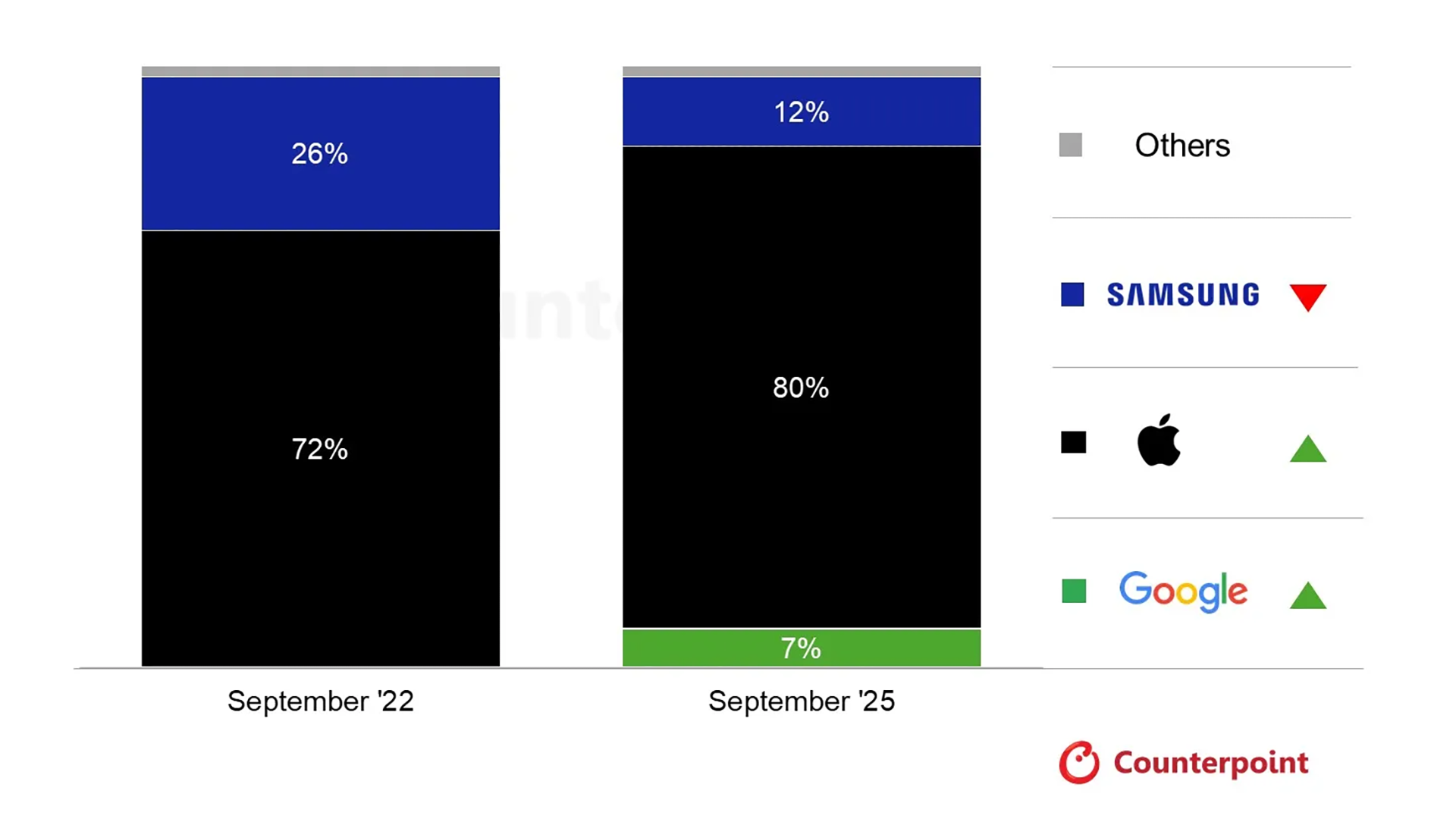 市場調査会社であるCounterpointの新しいレポートによると、アメリカの市場においてはGoogle Pixel 10は2025年9月において前年同期比で28%と驚異的な成長を見せていることが判明したとしています。