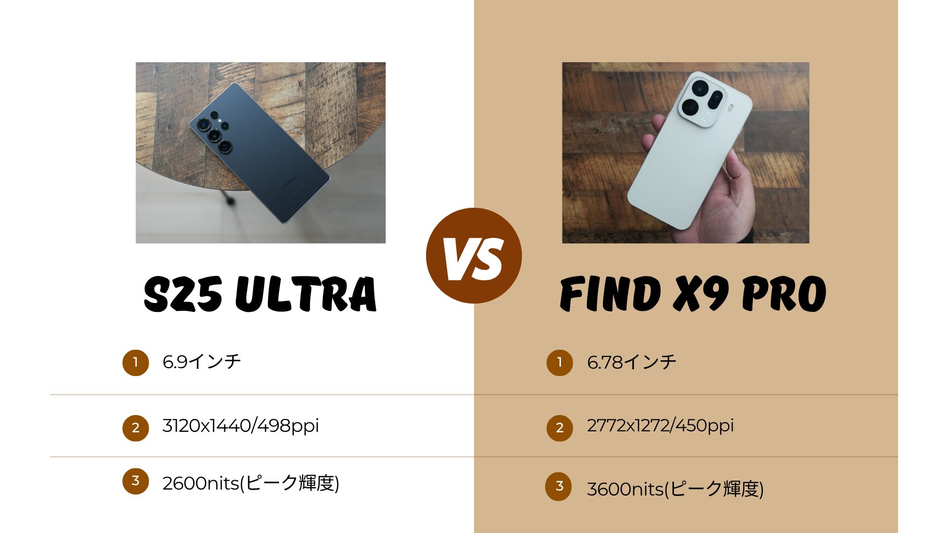 今回はOppo Find X9 ProとGalaxy S25 Ultraの比較レビューを主観的にまとめてみたいと思います。