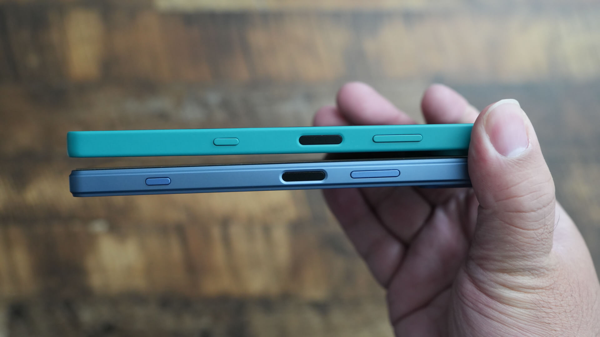 一方でXperia 5Ⅴは11mmとなっておりデザイン的には控えめですが全体的にみると厚みがあります。本来であれば2世代分型落ちしていることになるので仕方ないですがXperia 5Ⅴはハイエンドの機種であることを考えると本体は地味に分厚いからこそトータルの厚みは増しやすい感じです。