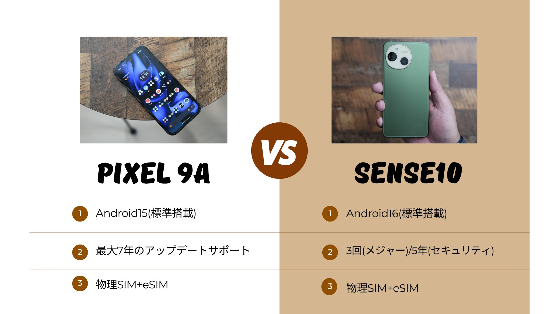 今回はGoogle Pixel 9aとAQUOS sense10の比較レビューを主観的にまとめたいと思います。