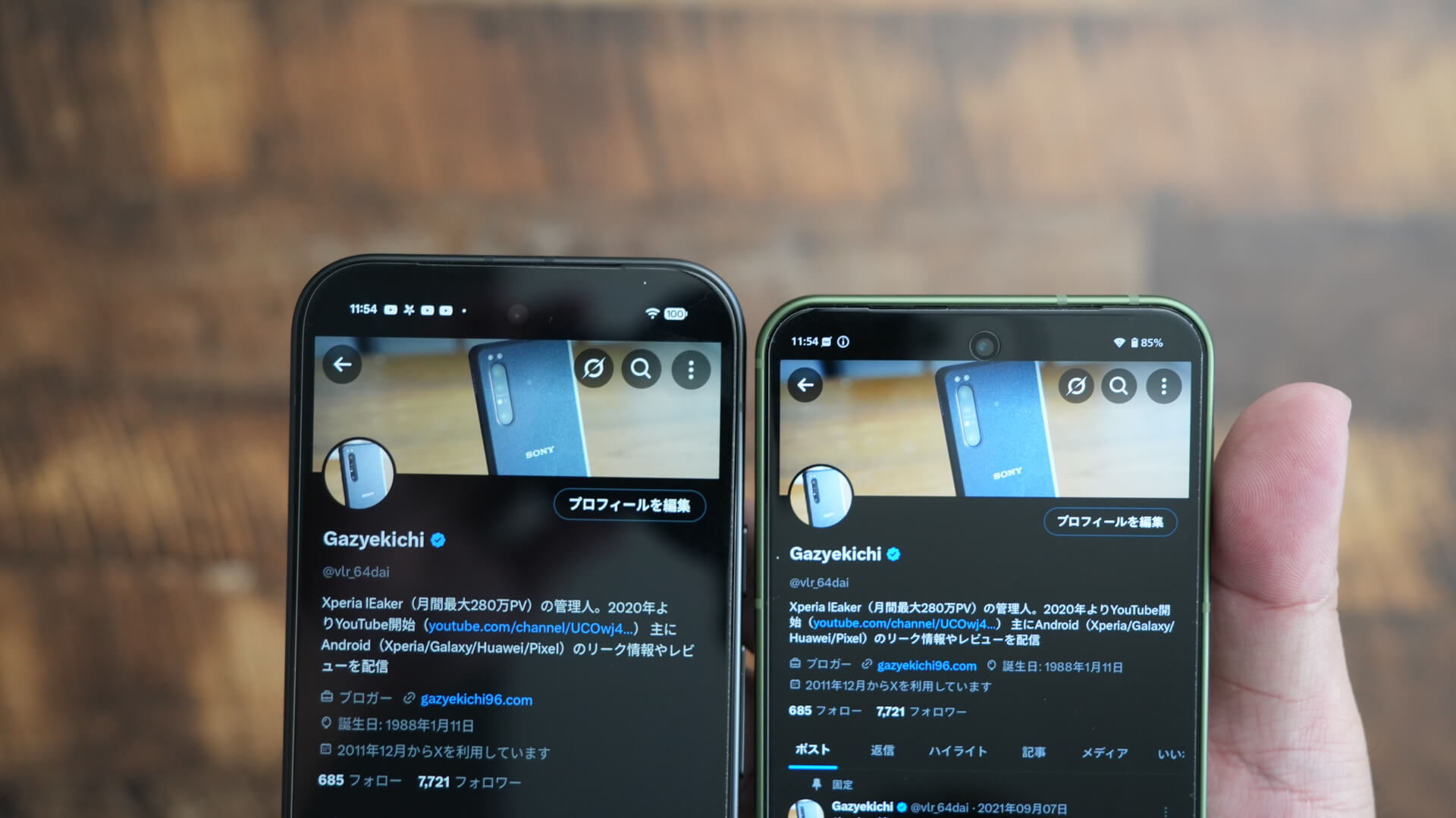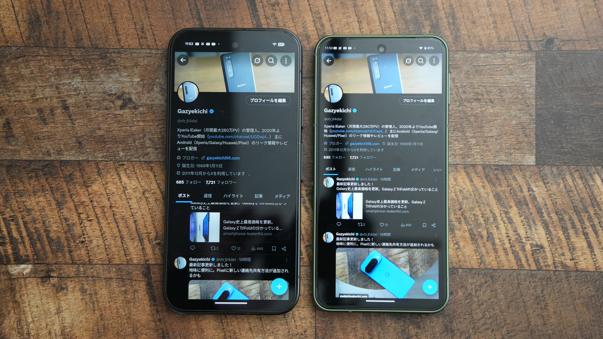 一方でアスペクト比が異なりPixel 9aは20:9で一度に表示できる情報量が多いかと思いきやXなどを表示してみると本体の横幅がほぼ一緒だからこそ情報量はほとんど変わらない感じです。