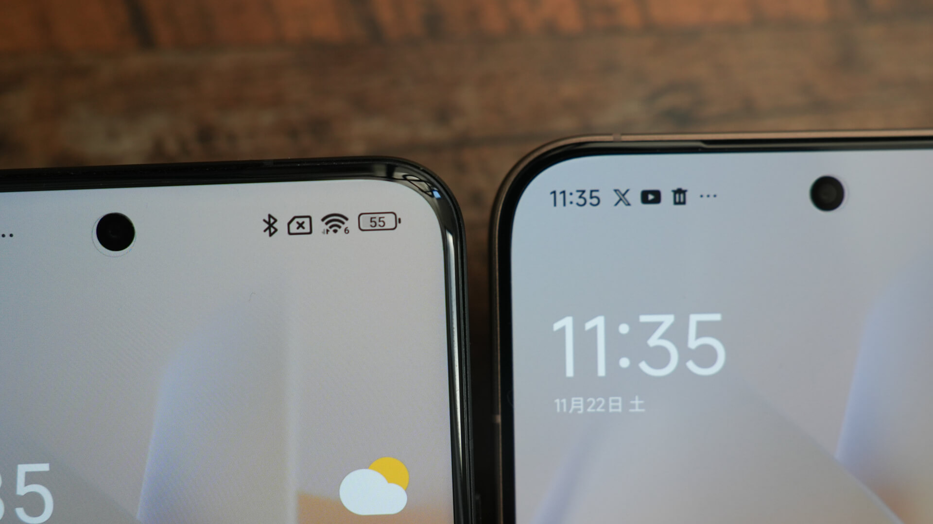 次にディスプレイを確認していきたいと思いますがXiaomi 15T Proはフラットディスプレイを採用しています。そしてXiaomi 15 Ultraは今や時代遅れに感じるマイクロクワッドカーブディスプレイを採用しています。