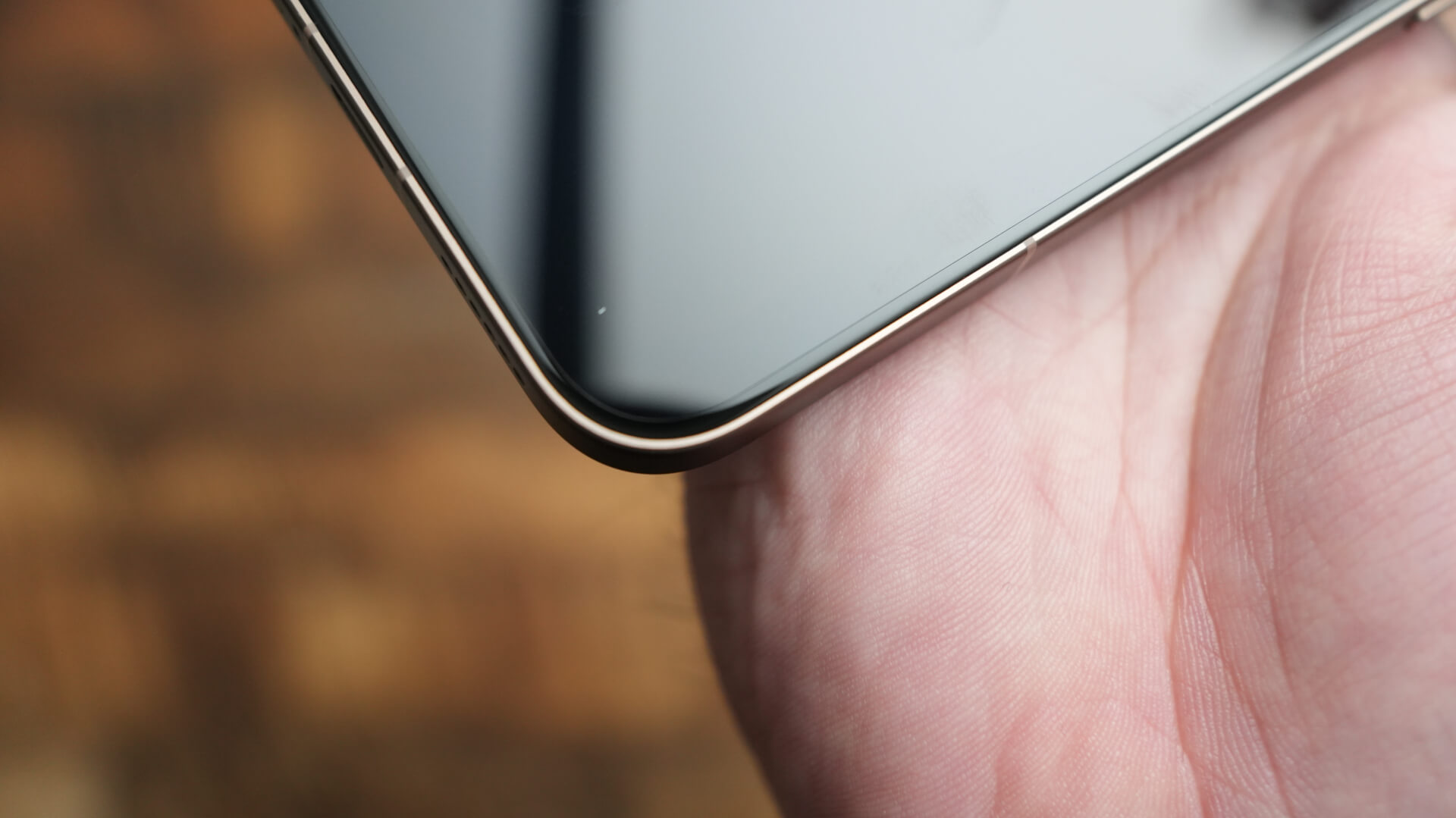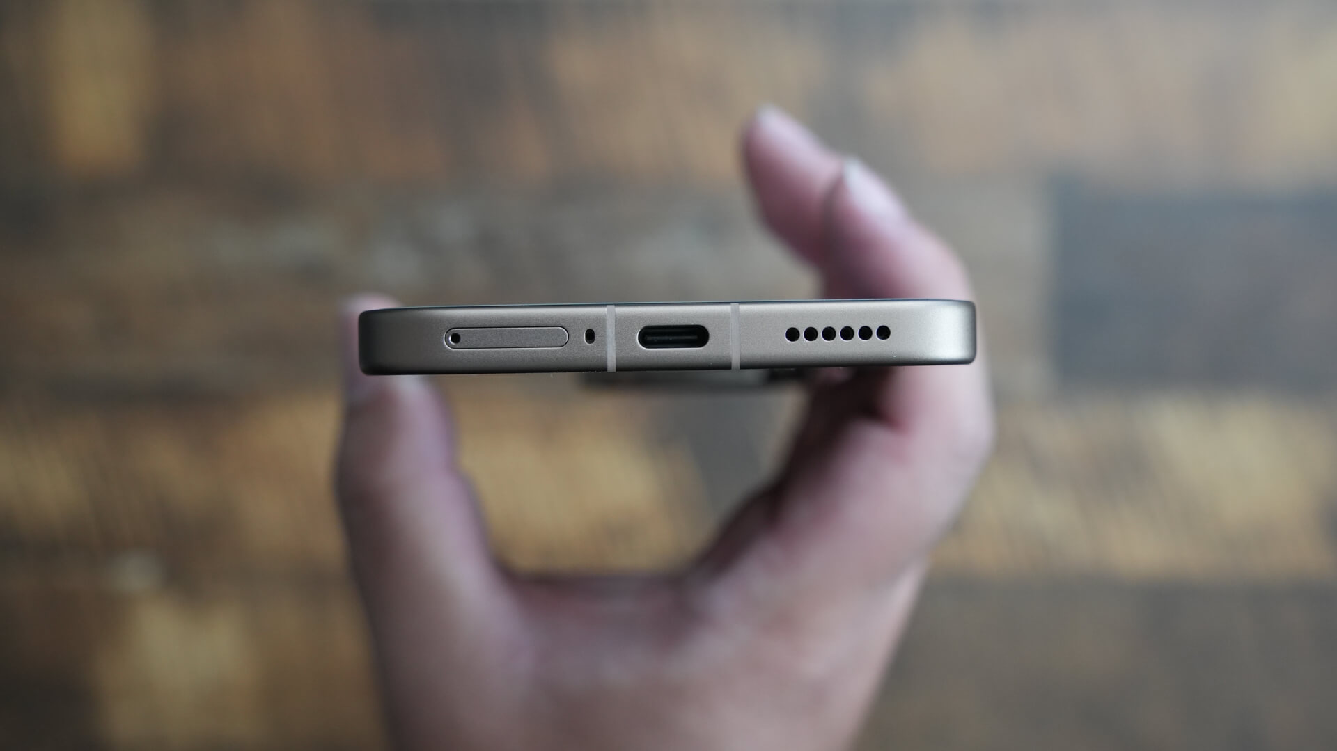最後に本体下部を確認するとマイクにUSB-CにスピーカーグリルにSIMトレイを搭載しています。サイドフレームはアルミにマット仕上げで質感は高めでフラット形状なのもポイントかなと思います。