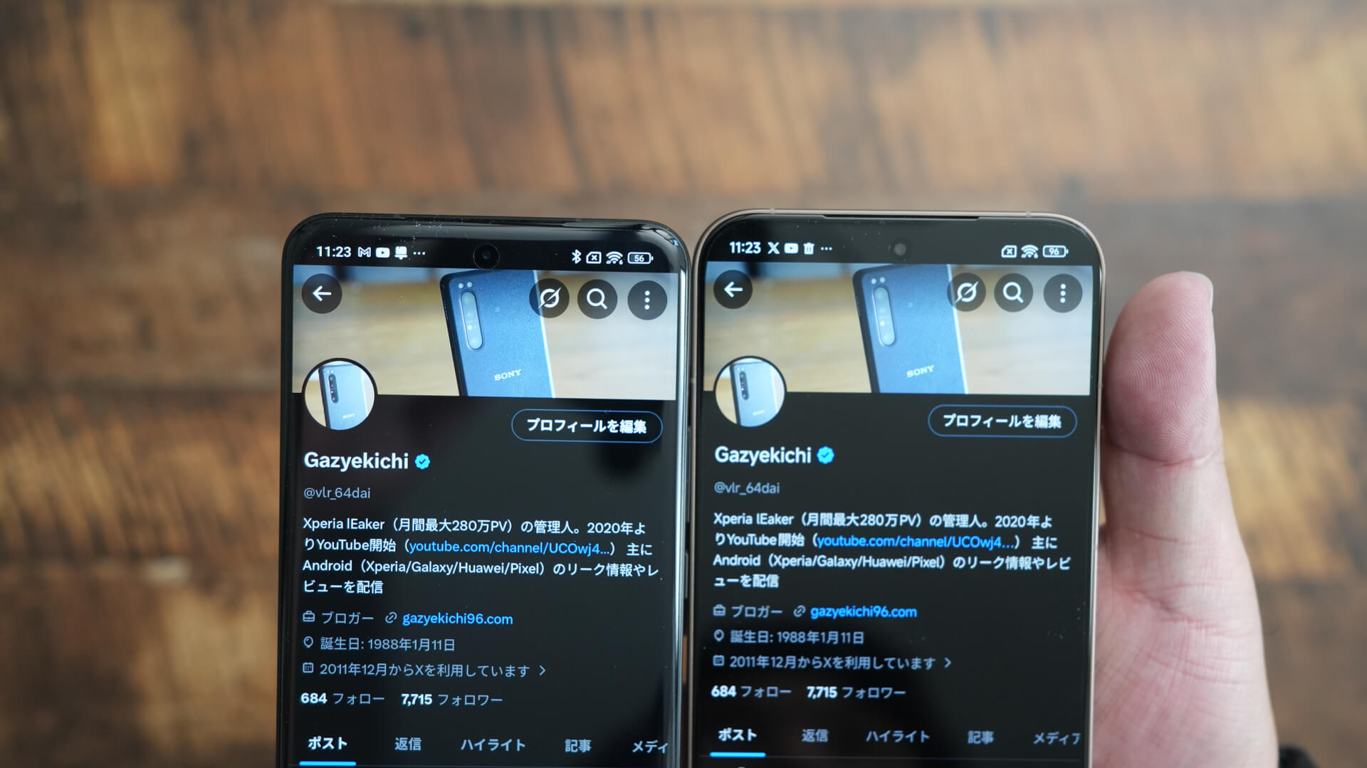 そしてコンテンツの表示を確認するためにYouTubeを再生してみると分かりやすい違いがないです。自分の目だとXiaomi 15 Ultraの方が僅かに暖色寄りというか赤みが強いように見えます。
