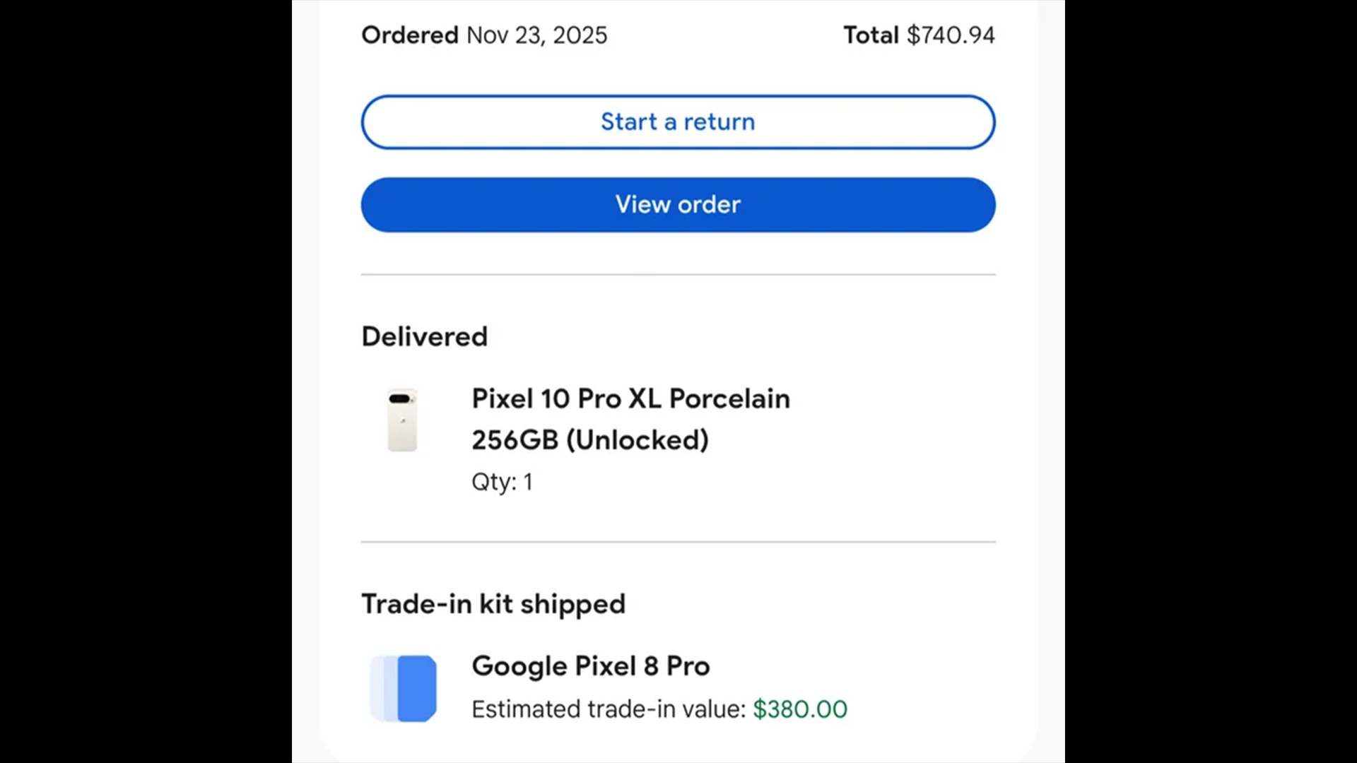 そもそもPixel 10 Pro XLがアメリカでもブラックフライデーの対象とはいえ、なぜ「$740」まで安くなっているのか不明です。むしろこの時点でかなり安いと思っており、さらに下取りを利用することで$400以下になるのでかなり安いのかなと思います。