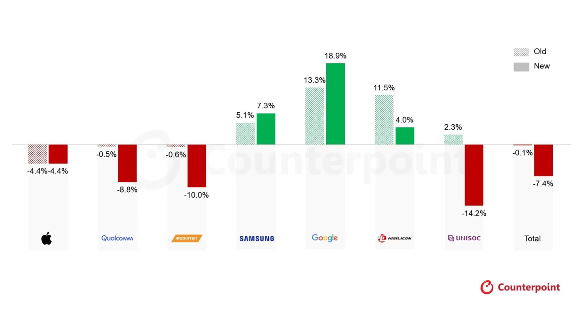 その中で今回の情報によるとGoogleは主要ブランドの中で「最も強い成長」を示す可能性があるとしています。別にGoogleに限った話ではありませんが、独自SoCを開発しているメーカーの方が現状に耐性があると指摘。