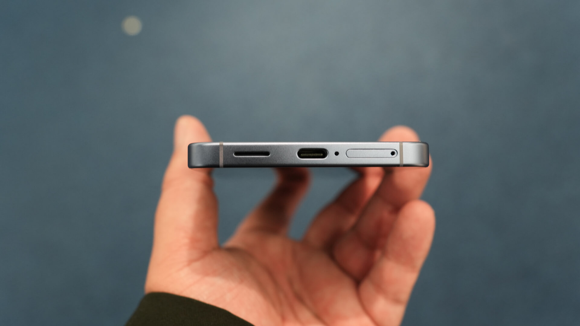 サイドフレームはアルミを採用しておりフラット形状かつマット仕上げで質感は高めに感じます。中華系のようにAppleを意識してショートカットボタンやカメラ用の物理ボタンが非搭載のお陰で余計にスッキリしている印象を受け個人的にはあまり物理ボタンは増やしてほしくないところです。