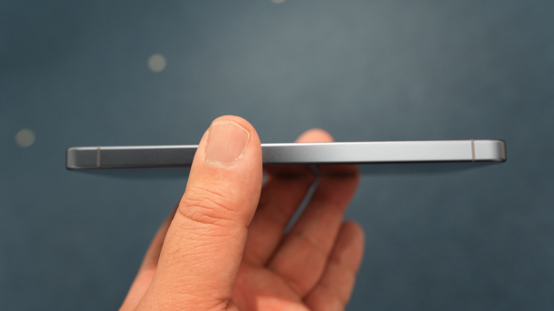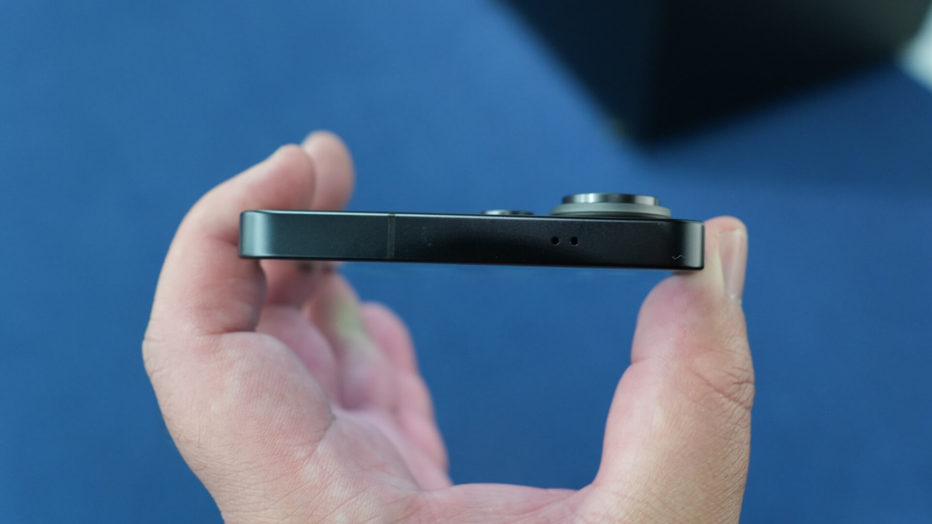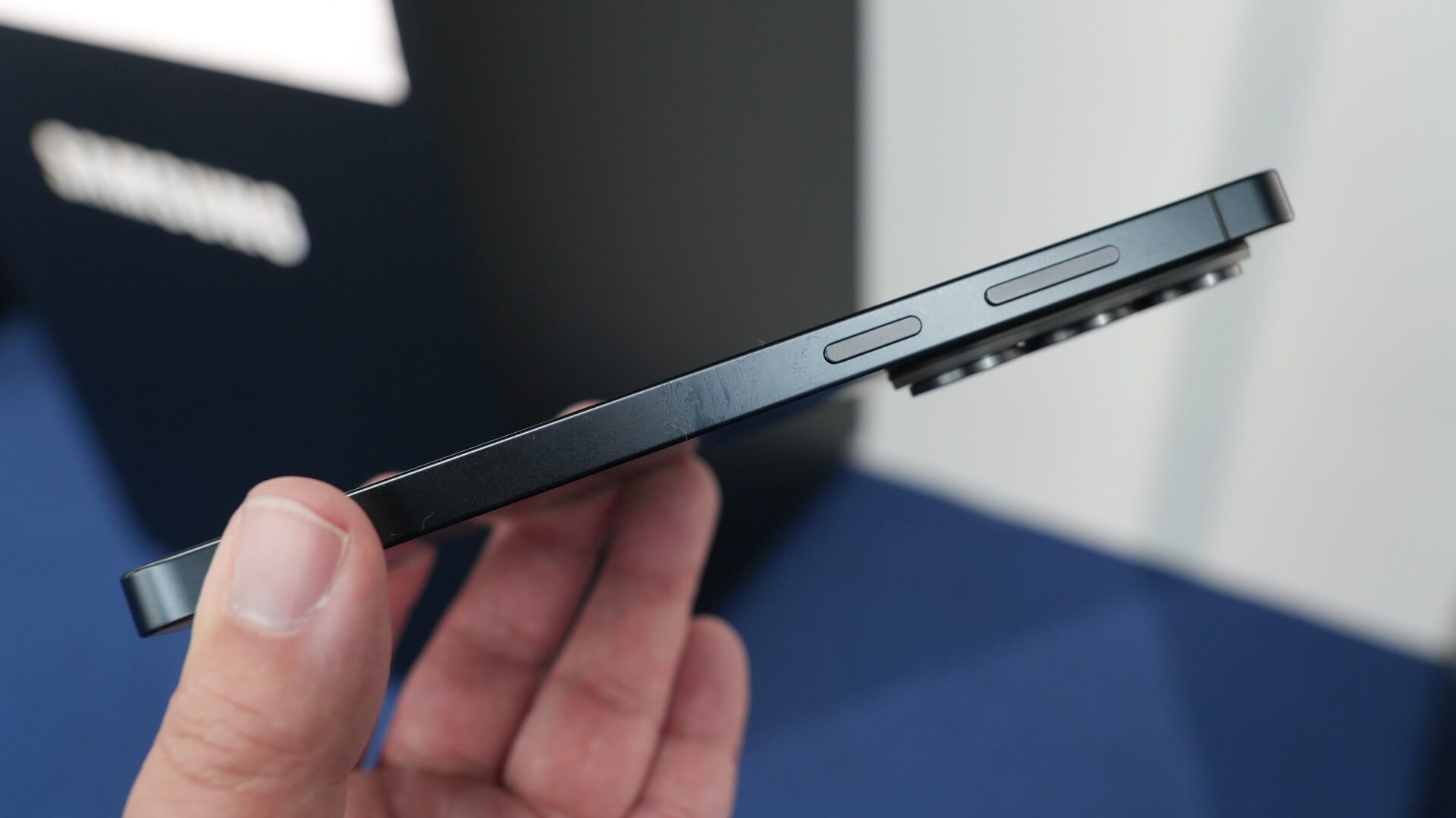 サイドフレームはアルミを採用しておりフラット形状かつマット仕上げで質感は高めに感じます。中華系のようにAppleを意識してショートカットボタンやカメラ用の物理ボタンが非搭載のお陰で余計にスッキリしている印象を受け個人的にはあまり物理ボタンは増やしてほしくないところです。