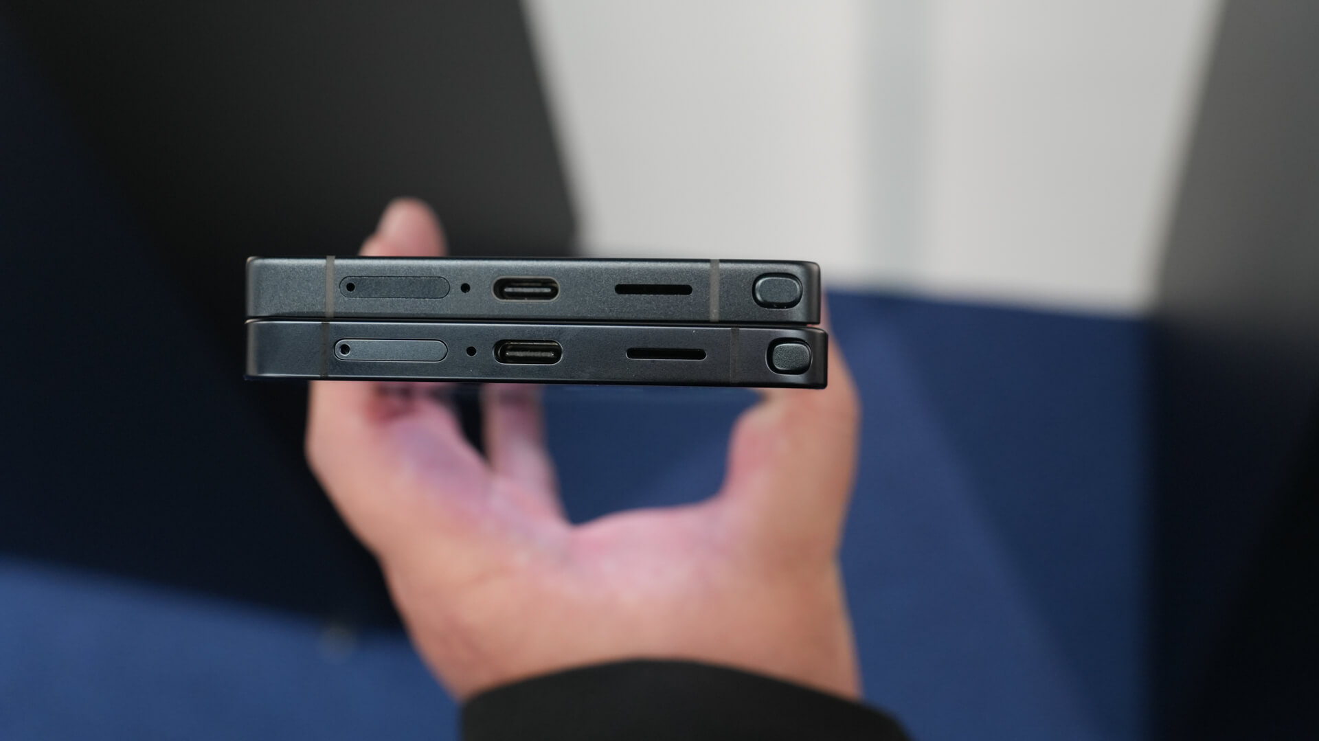 プレス画像などからデザインは判明していましたが改めてGalaxy S26から確認したいと思います。まず本体上部を確認するとアンテナスリットにマイクのみで本体左側面は特段何もありません。