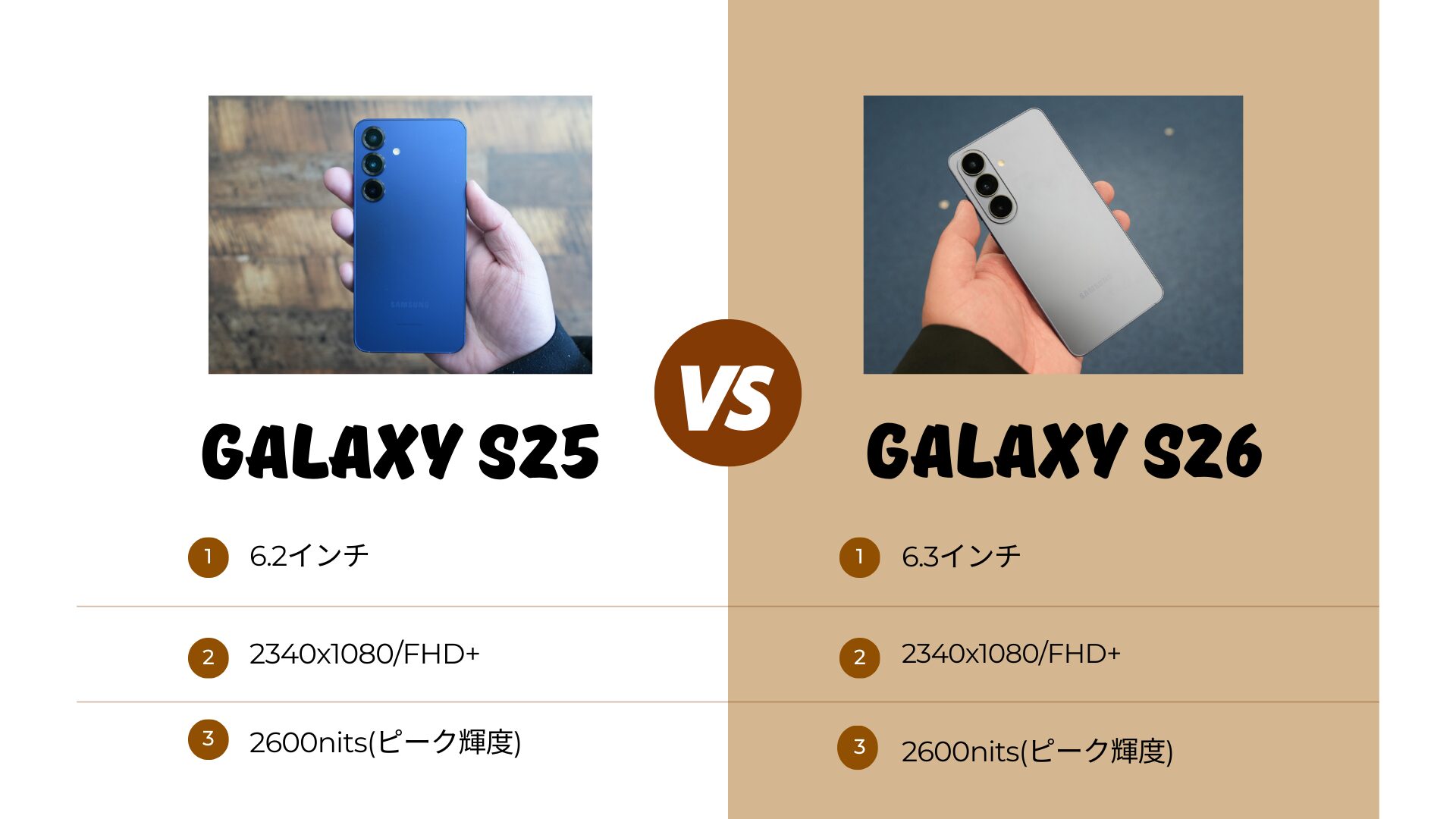 次にGalaxy S26のディスプレイを確認していきたいと思いますがディスプレイサイズが僅かに大型化した一方で表示解像度が変わらないことからも画素密度でみれば僅かに下がっています。