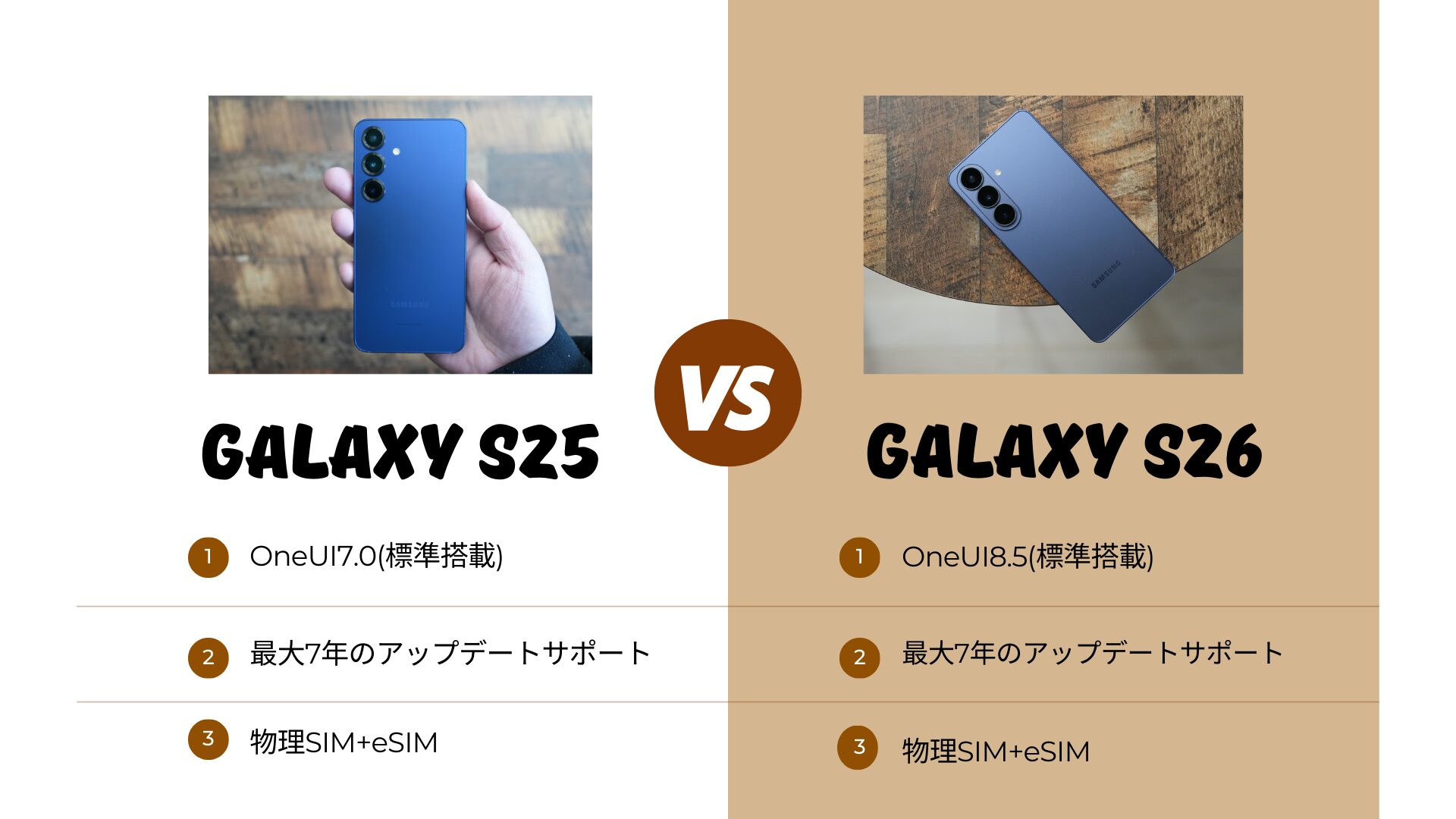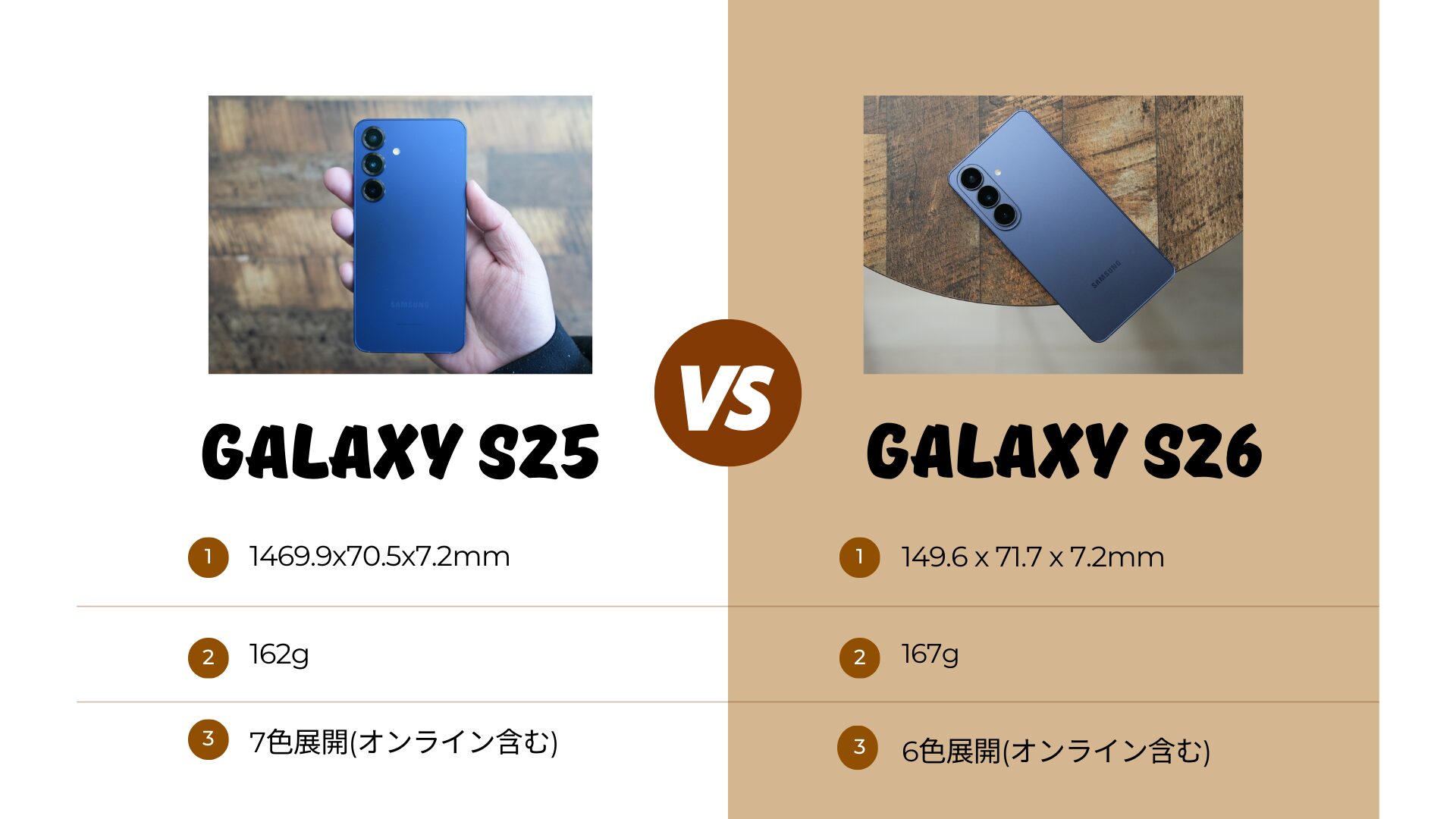 今回のサンプルはGalaxy S25/Galaxy S26の順番になっているので予めご了承下さい。