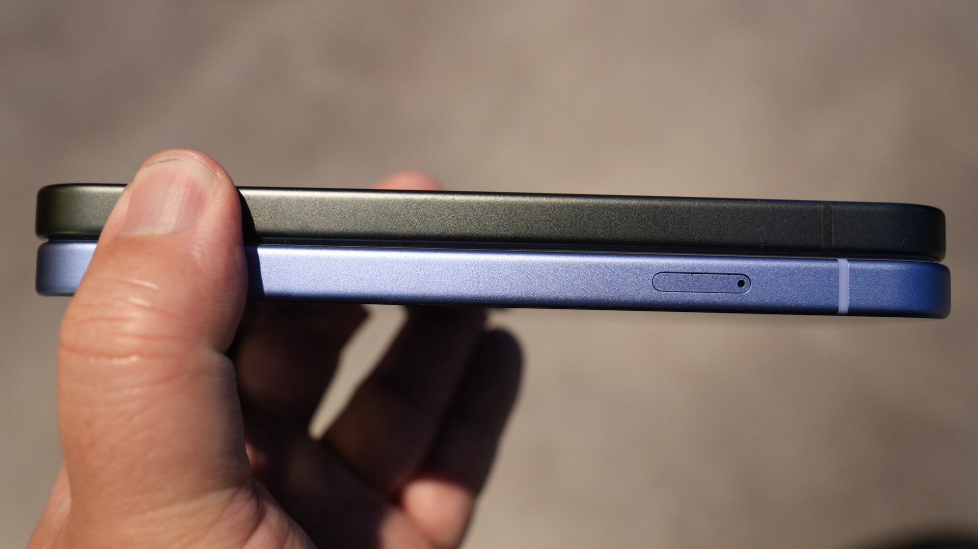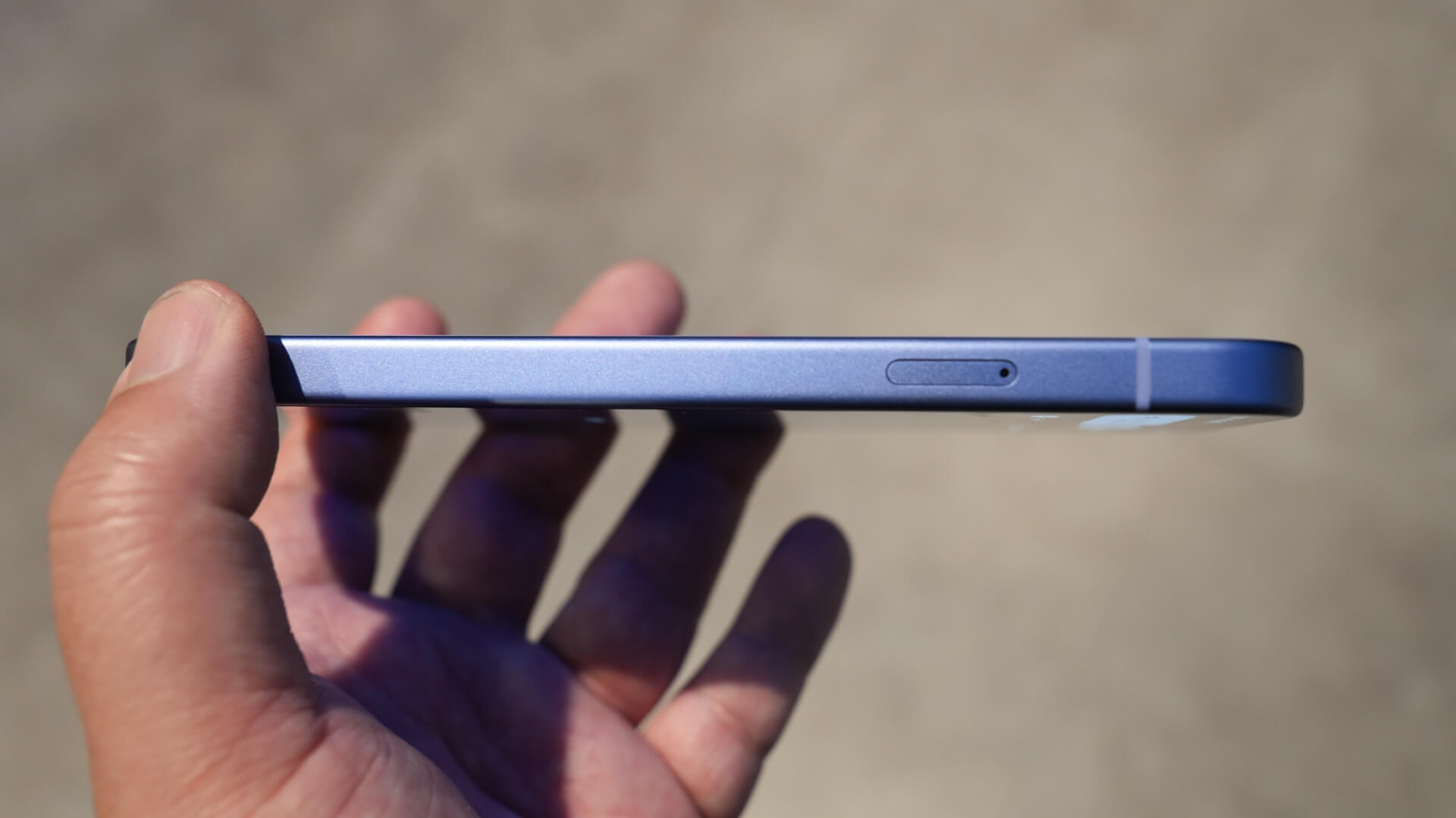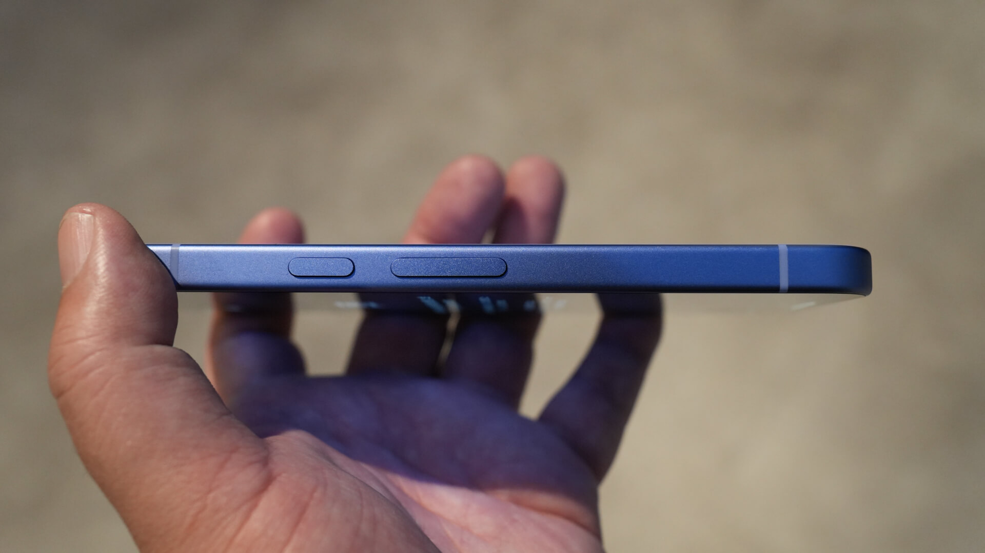 そして前モデルからどのようにデザインが変わったの確認していきたいと思いますがサイドフレームの質感は一緒で物理ボタンの配置はSIMトレイの位置が変わったくらいです。