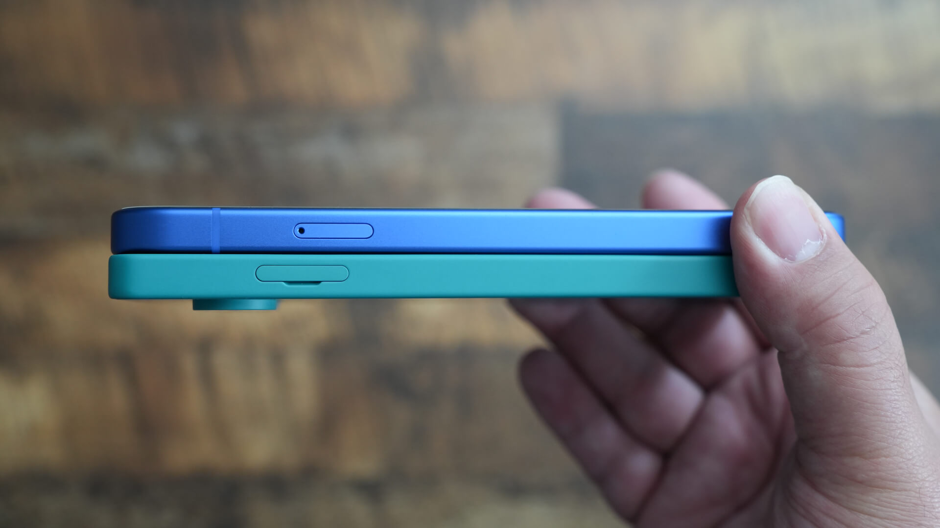 サイドフレームは両機種ともフラットで僅かにディスプレイとバックパネルにかけて湾曲したデザインを共通して採用しているからこそ本体の厚みを地味に実感しやすいのかもです。